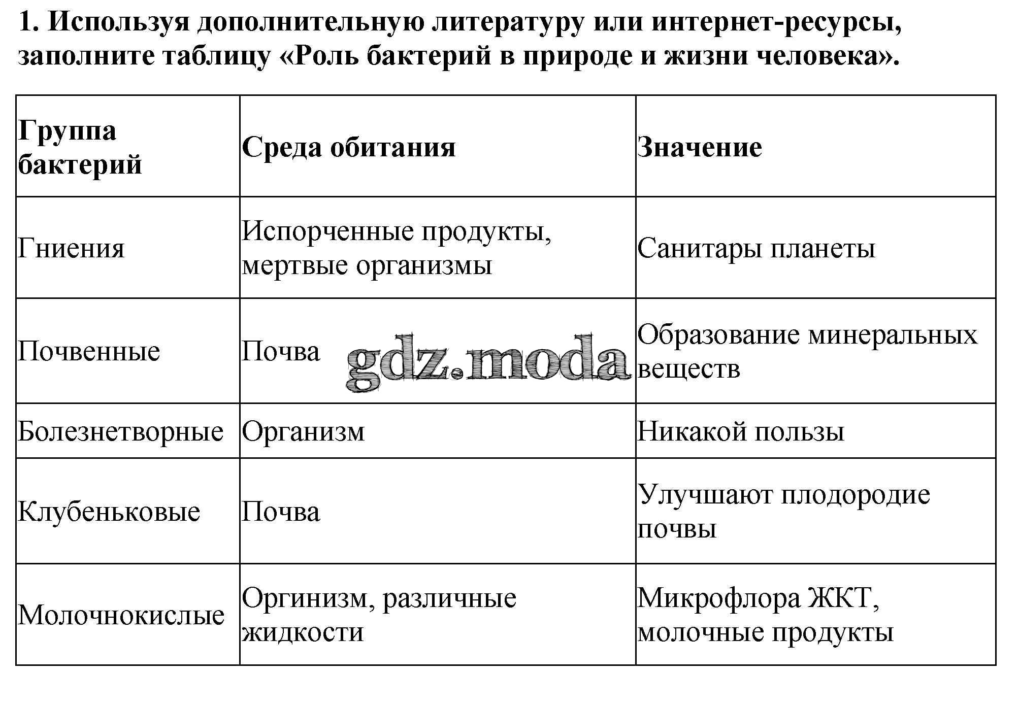 ОТВЕТ на задание № 1 Рабочая тетрадь по Биологии 5 класс Пасечник Линия жизни