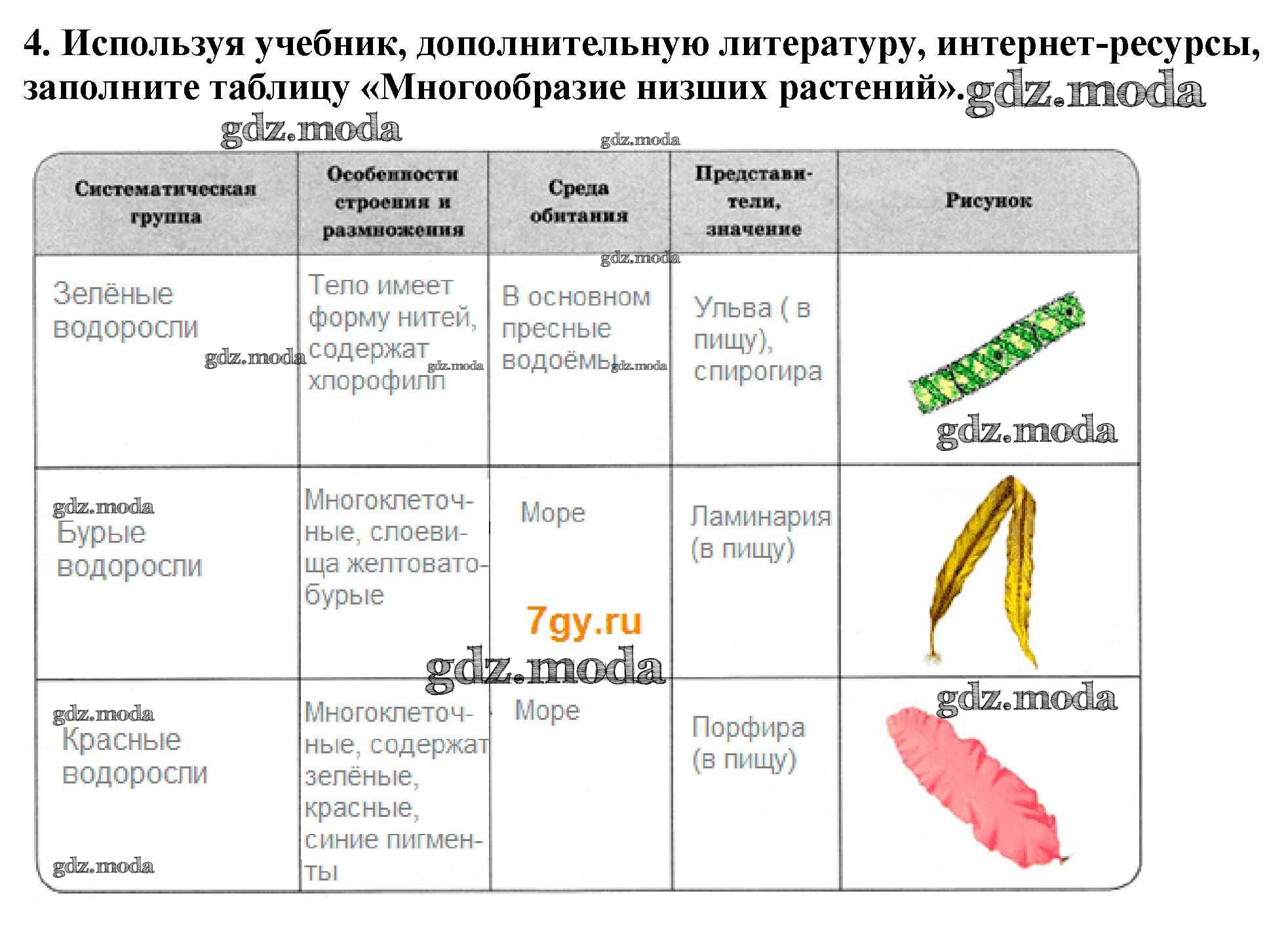 ОТВЕТ на задание № 4 Рабочая тетрадь по Биологии 5 класс Пасечник Линия жизни