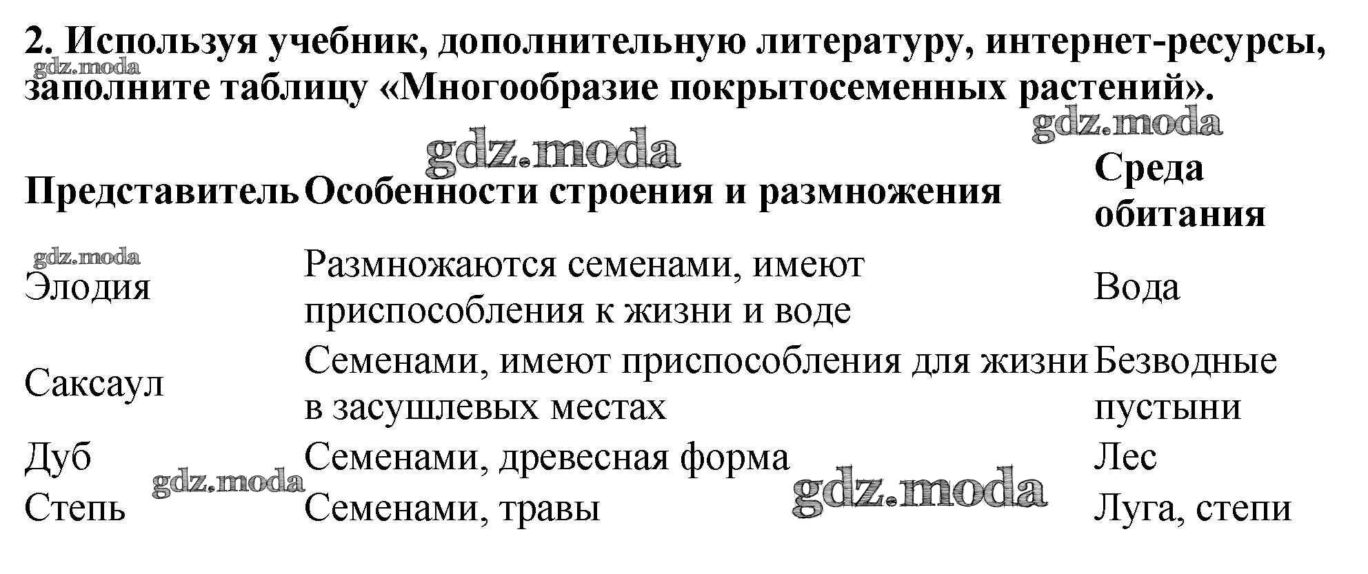 ОТВЕТ на задание № 2 Рабочая тетрадь по Биологии 5 класс Пасечник Линия жизни