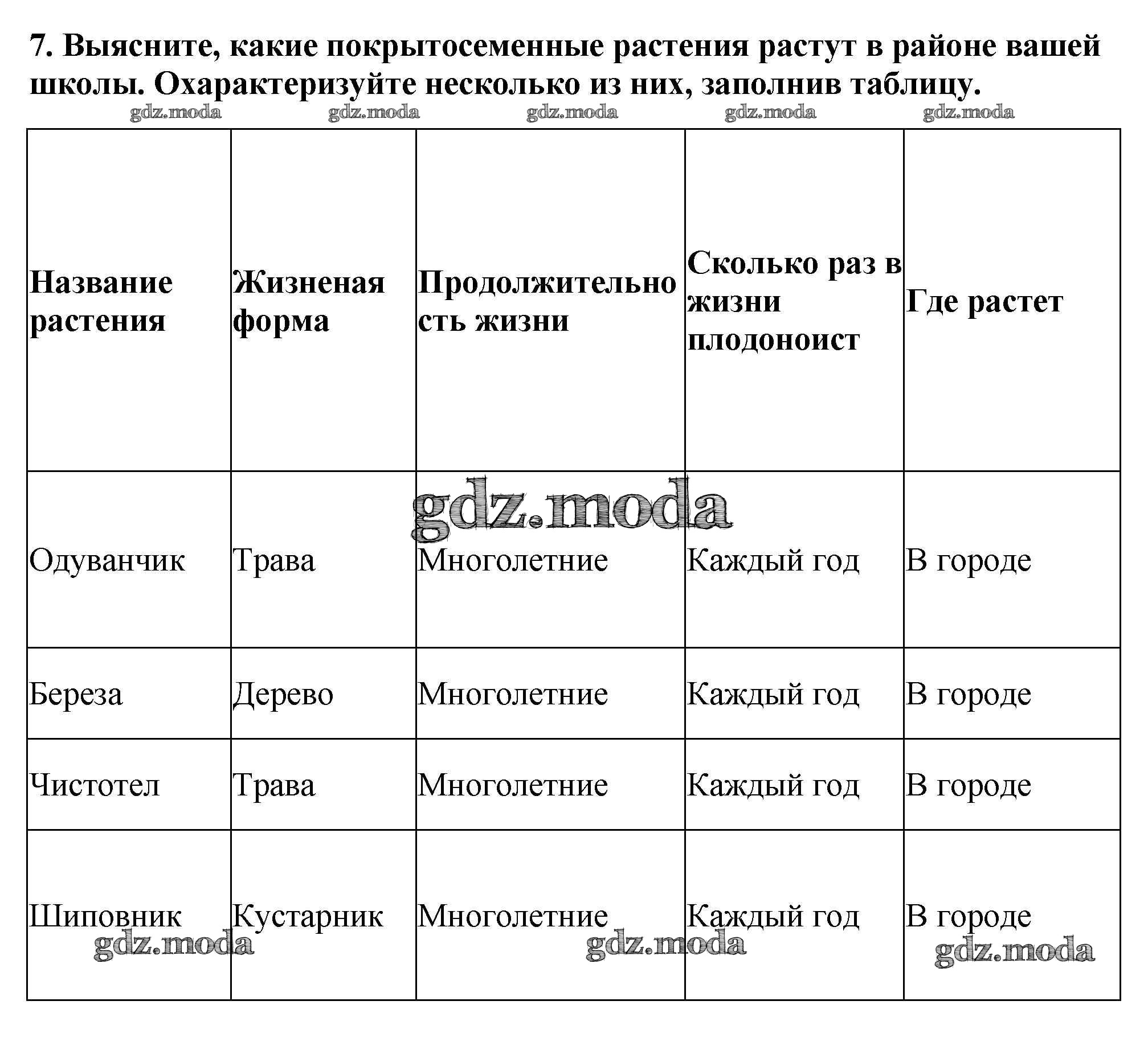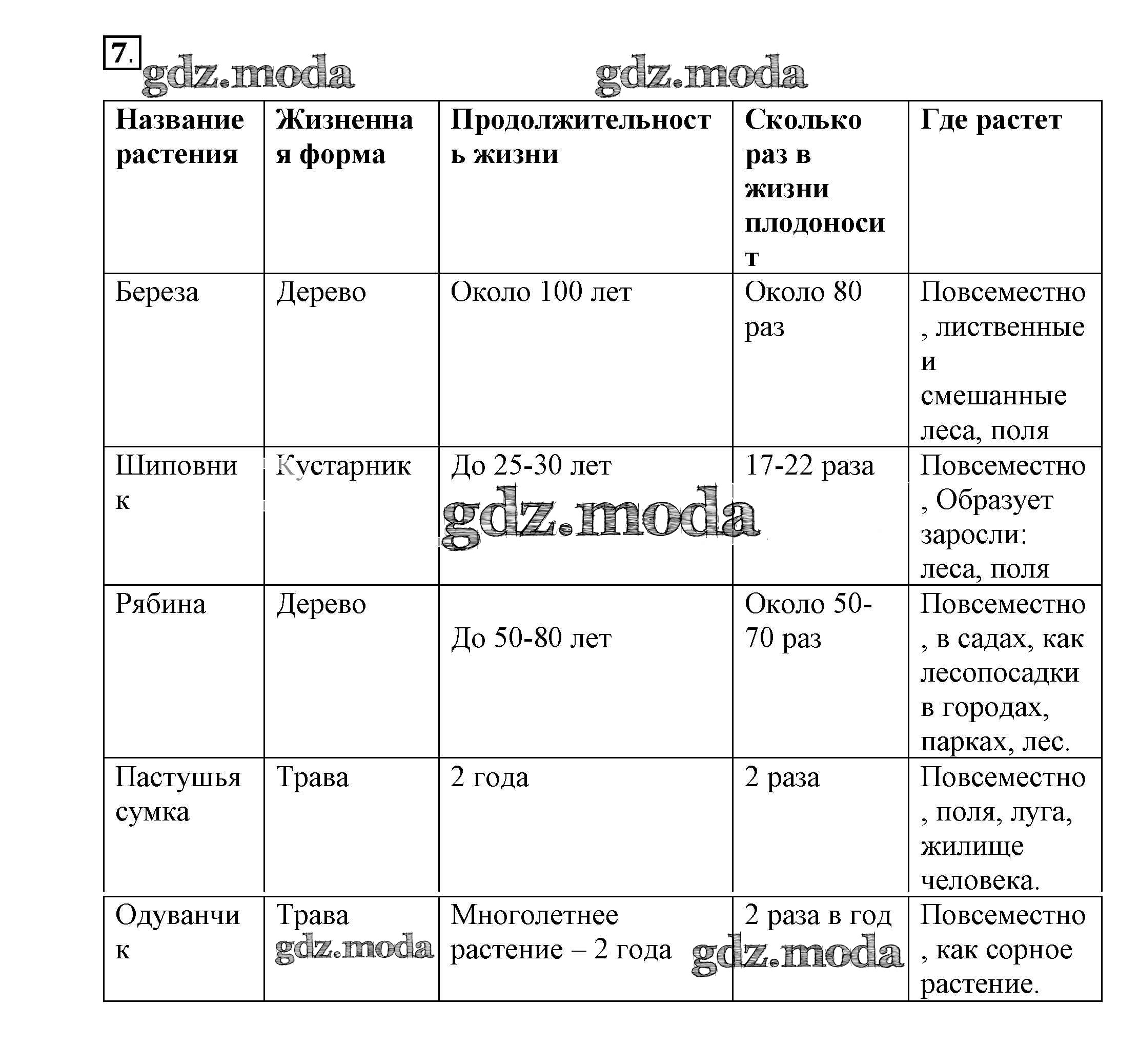 ОТВЕТ на задание № 7 Рабочая тетрадь по Биологии 5 класс Пасечник Линия жизни
