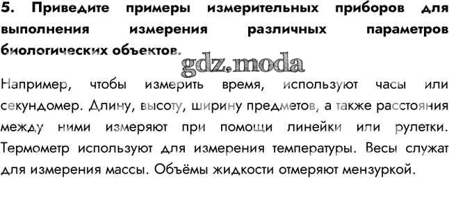 ГДЗ решение к заданию № 5 Биология 5 класс Пасечник В.В. Просвещение 2021 Линейный курс ФГОС бесплатно на гдз.мода!