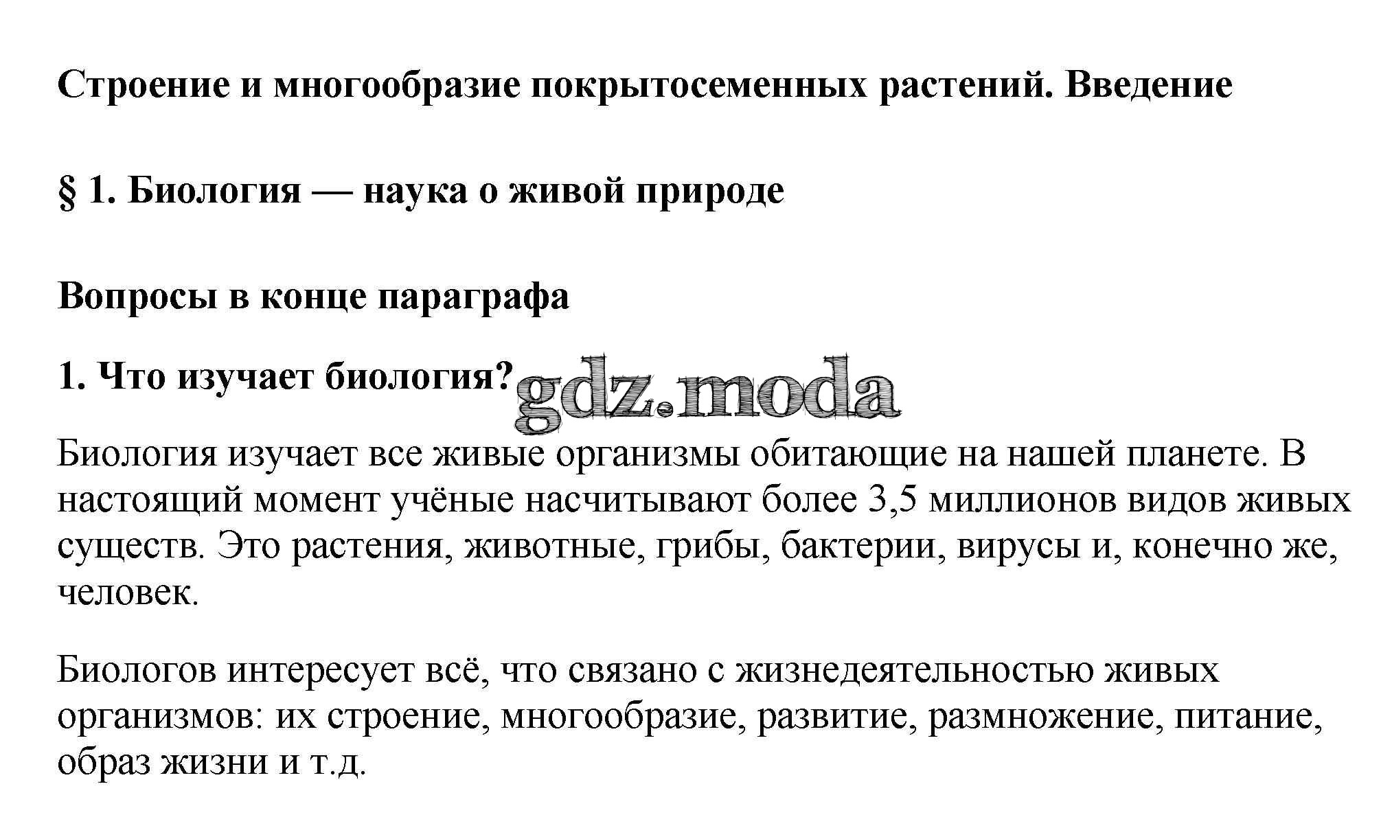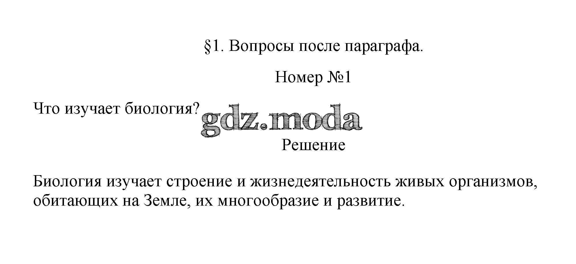 ОТВЕТ на задание № 1 Учебник по Биологии 5 класс Пасечник УМК