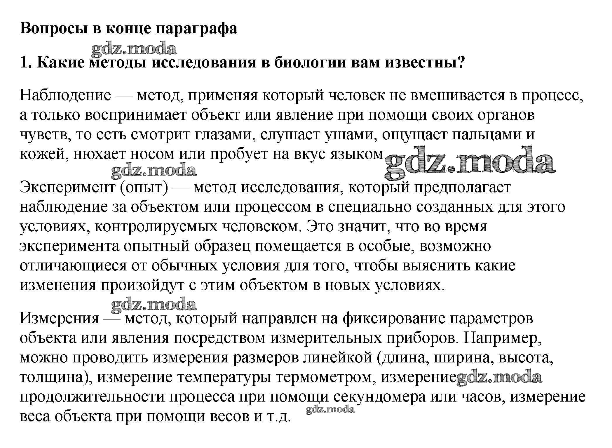 ОТВЕТ на задание № 1 Учебник по Биологии 5 класс Пасечник УМК