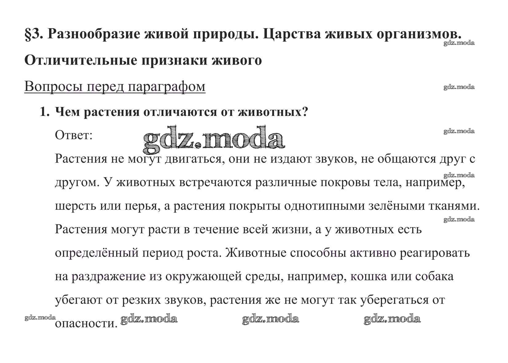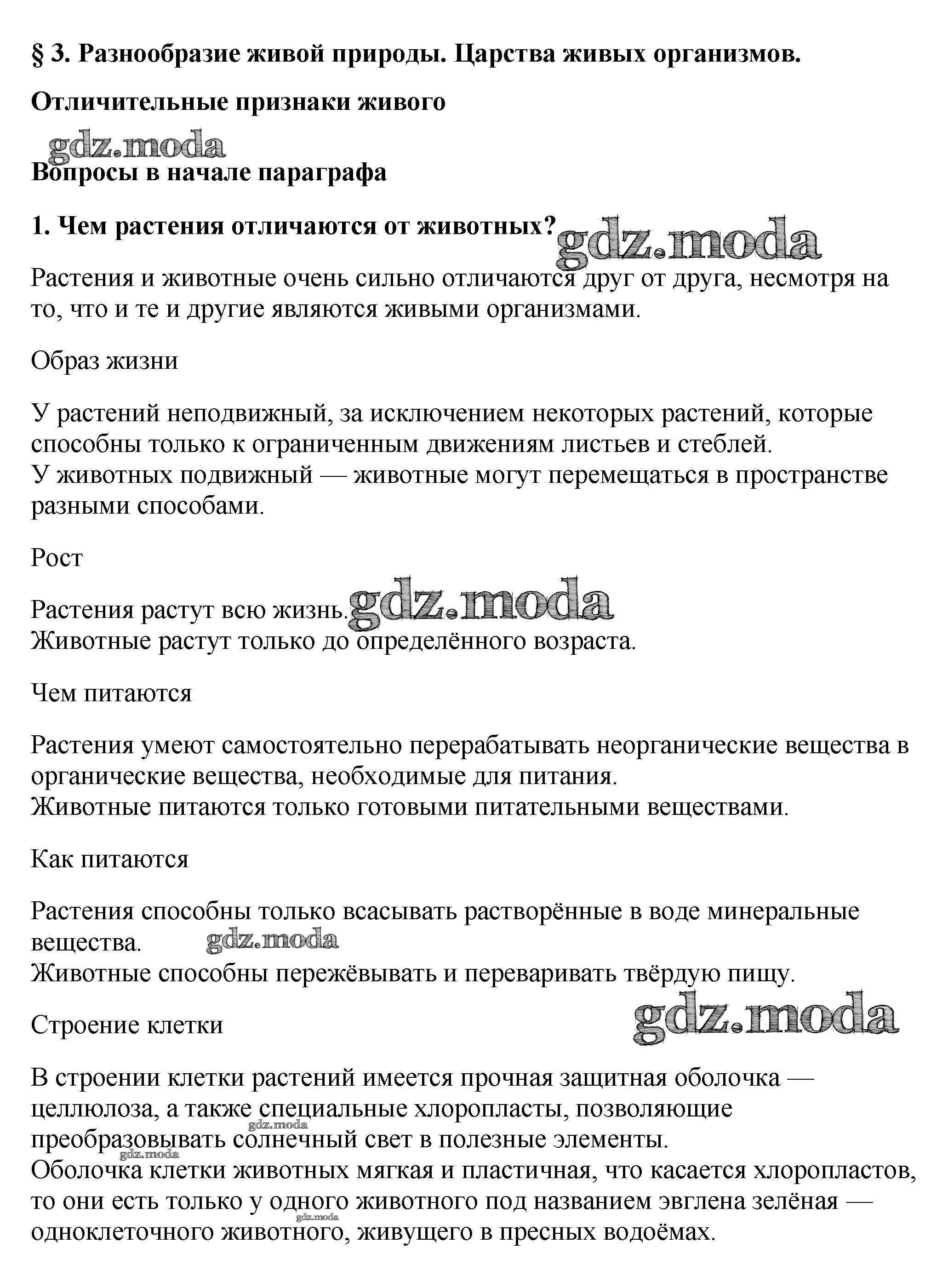 ОТВЕТ на задание № 1 Учебник по Биологии 5 класс Пасечник УМК