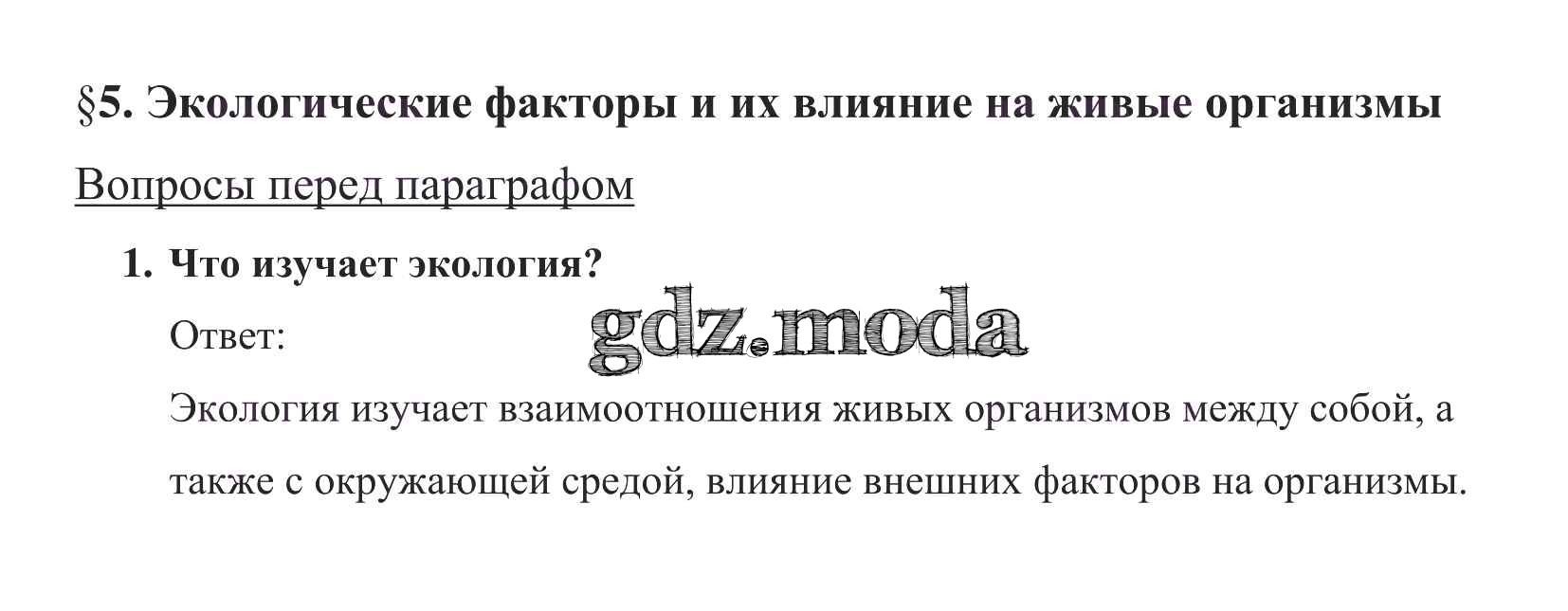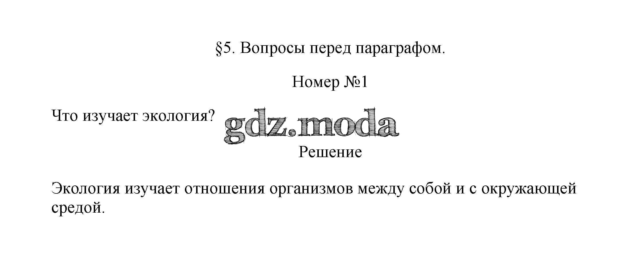 ОТВЕТ на задание № 1 Учебник по Биологии 5 класс Пасечник УМК