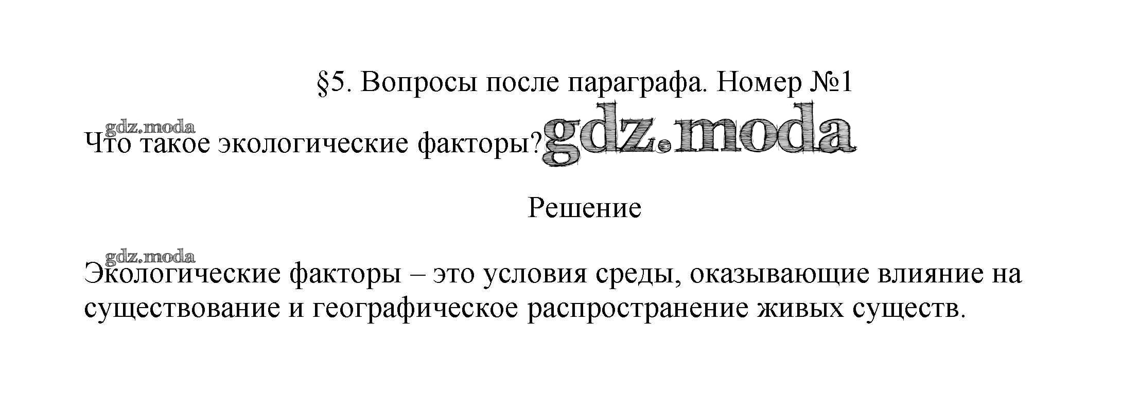 ОТВЕТ на задание № 1 Учебник по Биологии 5 класс Пасечник УМК