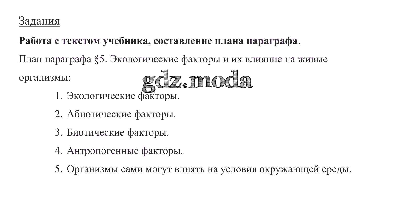 ОТВЕТ на задание № 1 Учебник по Биологии 5 класс Пасечник УМК