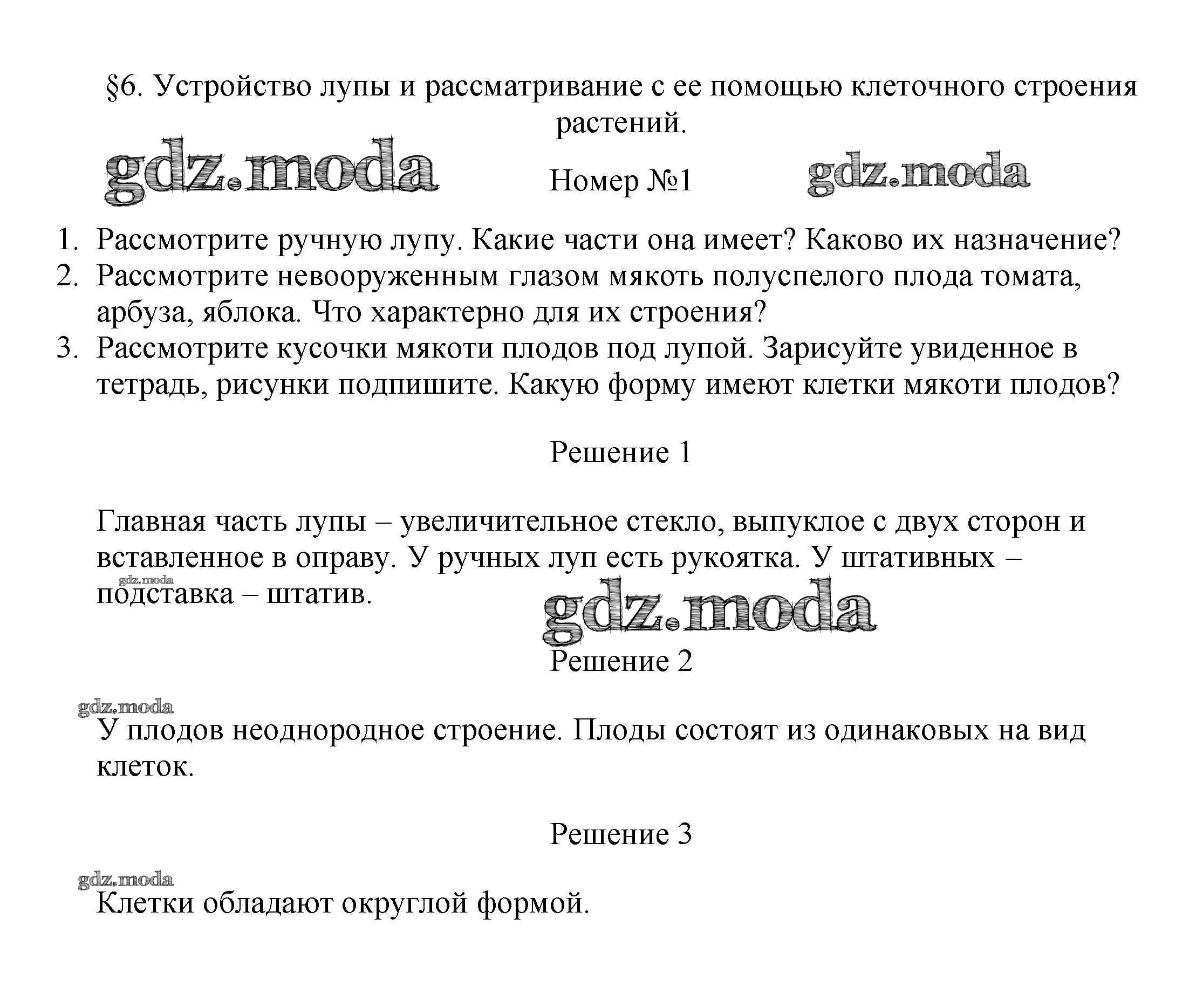 ОТВЕТ на задание № 1 Учебник по Биологии 5 класс Пасечник УМК