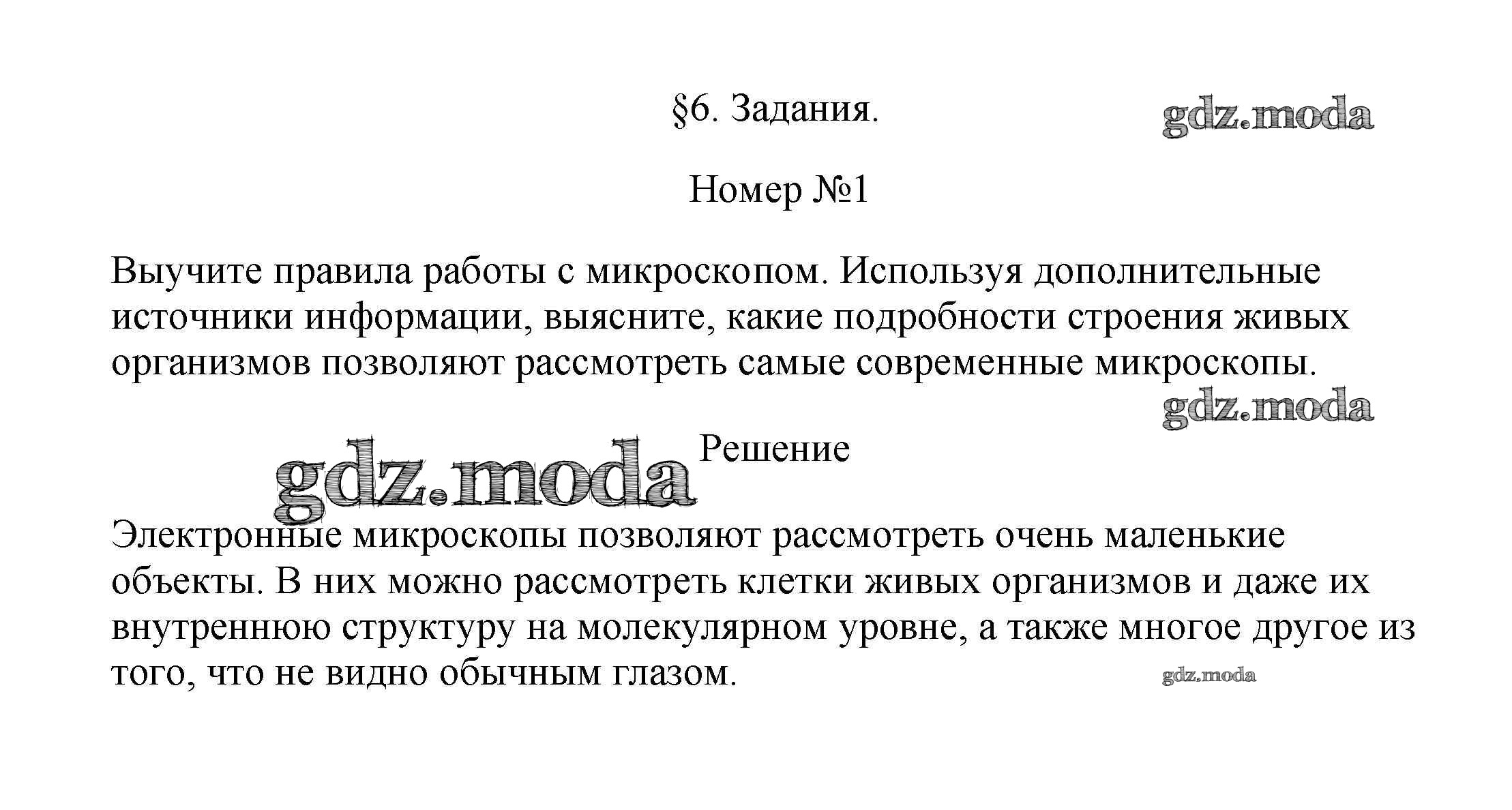 ОТВЕТ на задание № 1 Учебник по Биологии 5 класс Пасечник УМК
