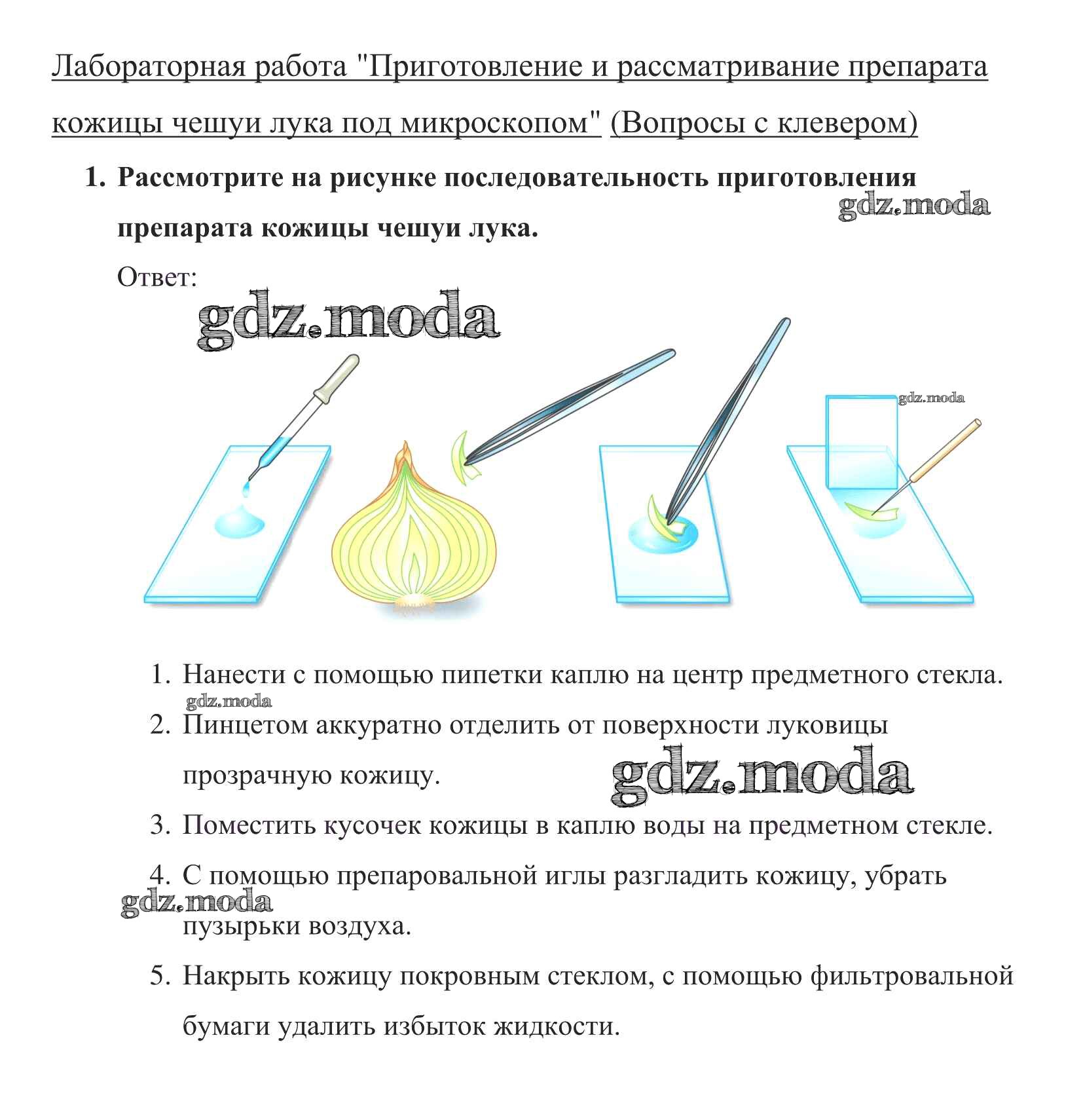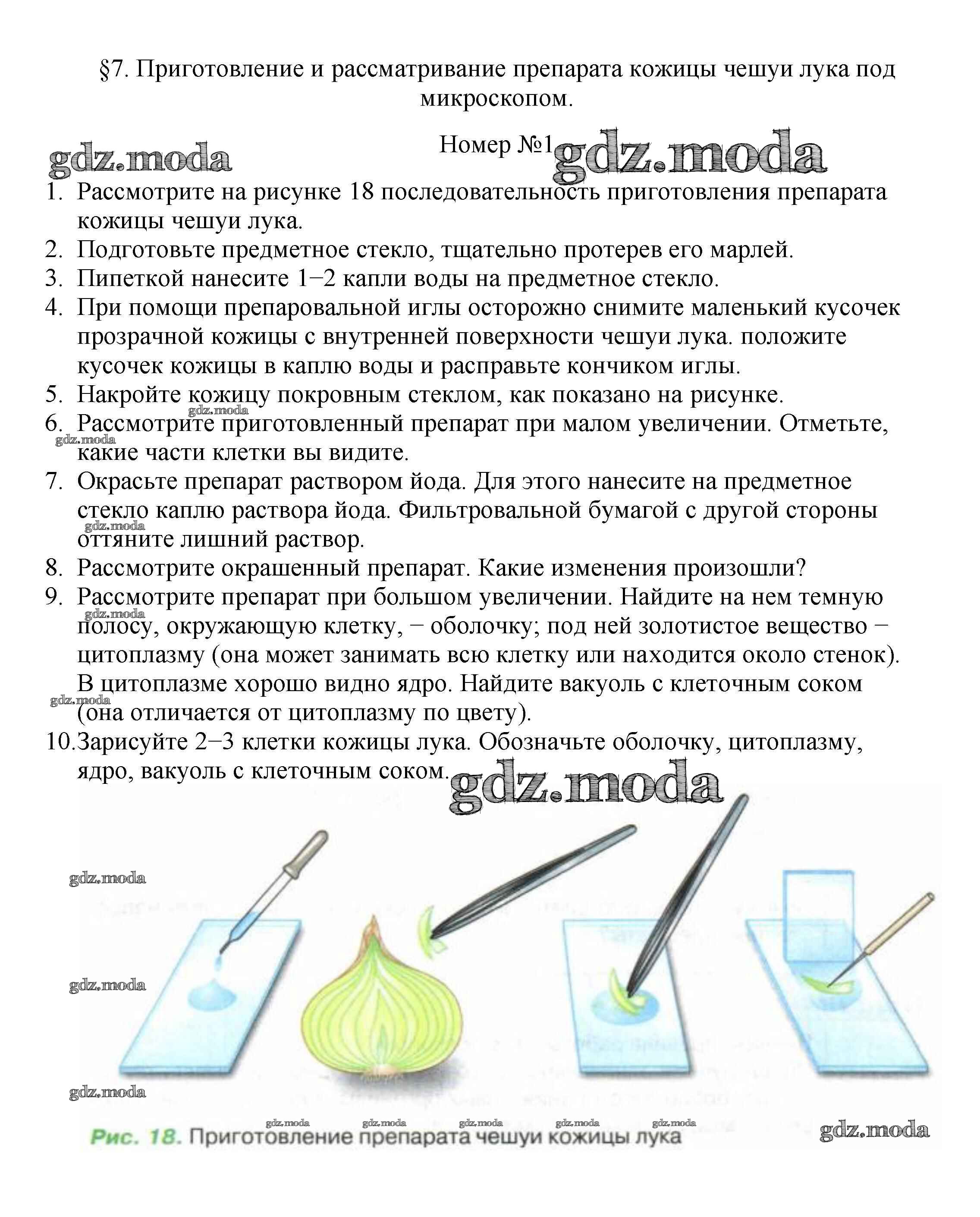 §7 / приготовление и рассматривание препарата кожицы чешуи лука под микроскопом / 1