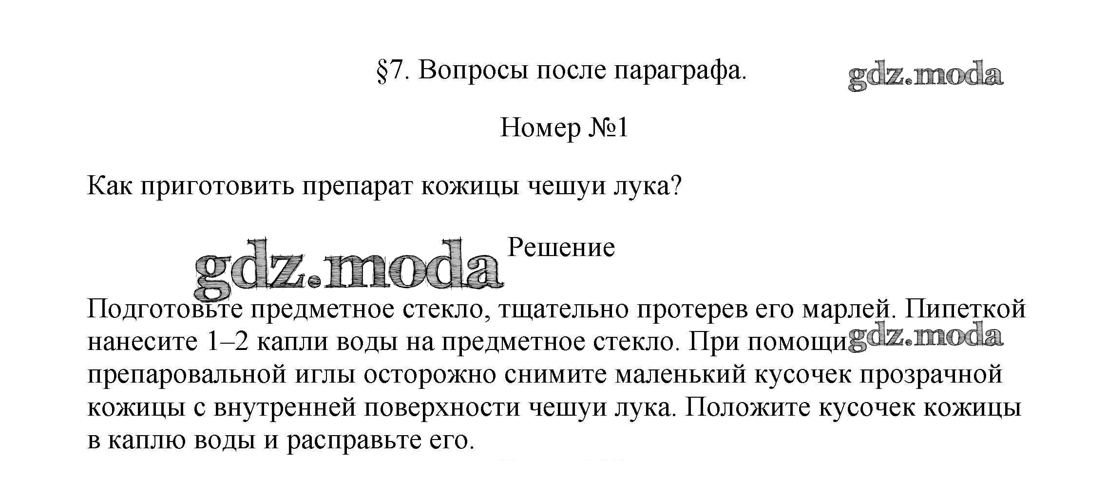 ОТВЕТ на задание № 1 Учебник по Биологии 5 класс Пасечник УМК