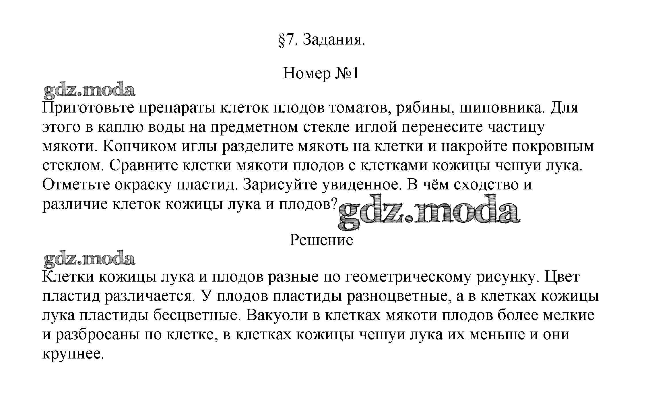 ОТВЕТ на задание № 1 Учебник по Биологии 5 класс Пасечник УМК
