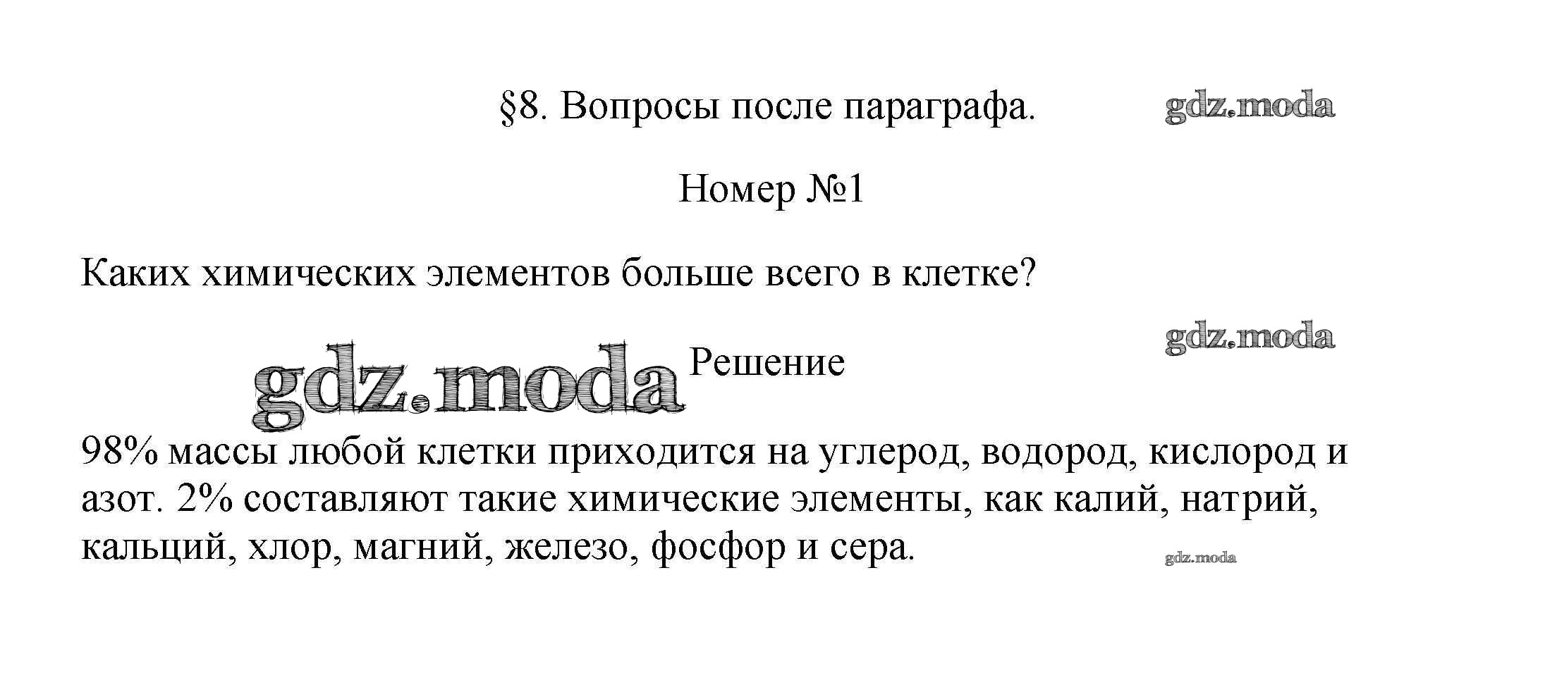 ОТВЕТ на задание № 1 Учебник по Биологии 5 класс Пасечник УМК