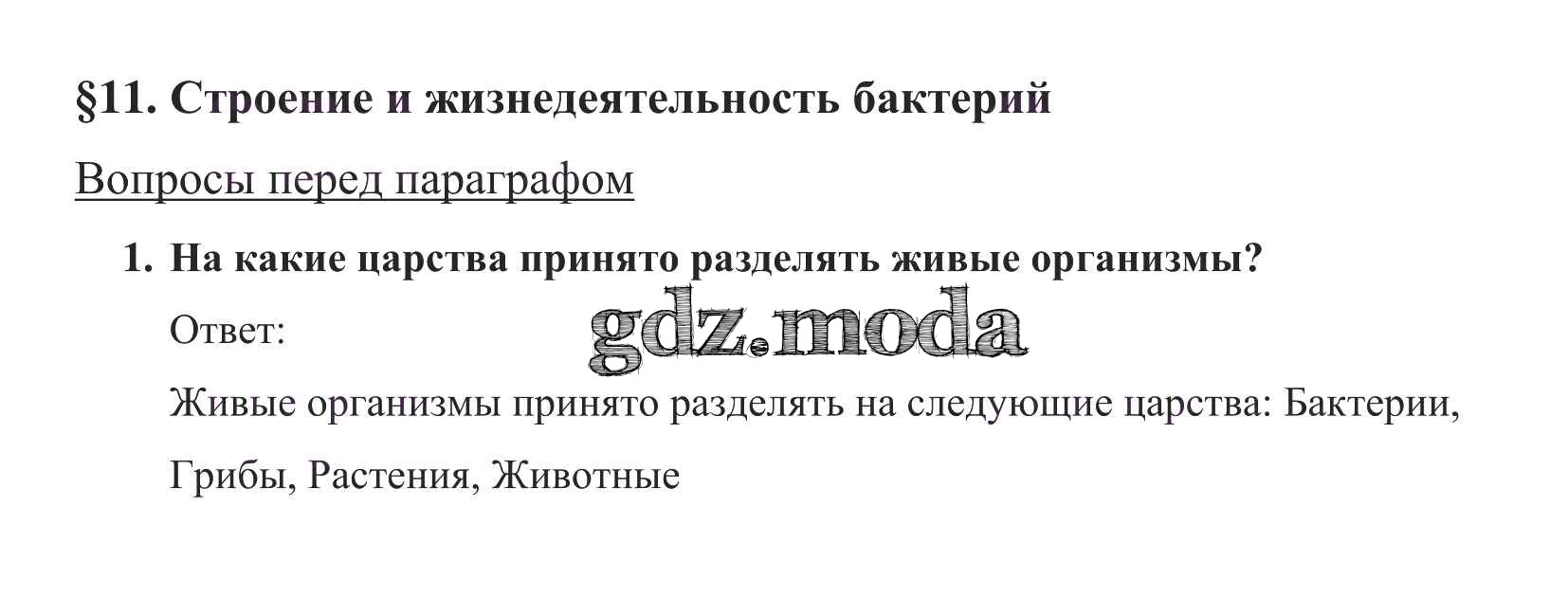 ОТВЕТ на задание № 1 Учебник по Биологии 5 класс Пасечник УМК
