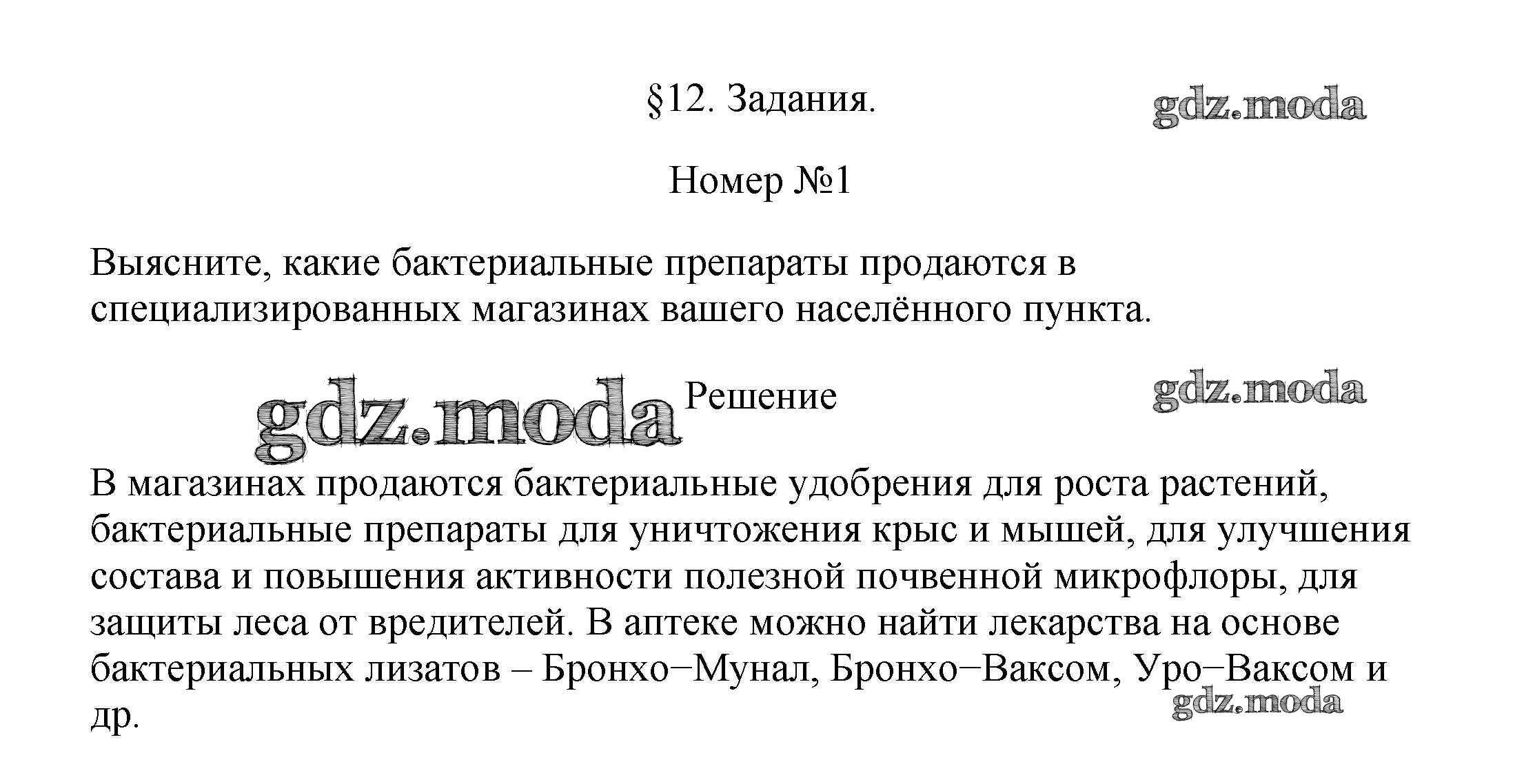 ОТВЕТ на задание № 1 Учебник по Биологии 5 класс Пасечник УМК