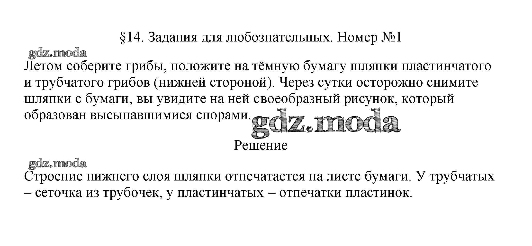 ОТВЕТ на задание № 1 Учебник по Биологии 5 класс Пасечник УМК