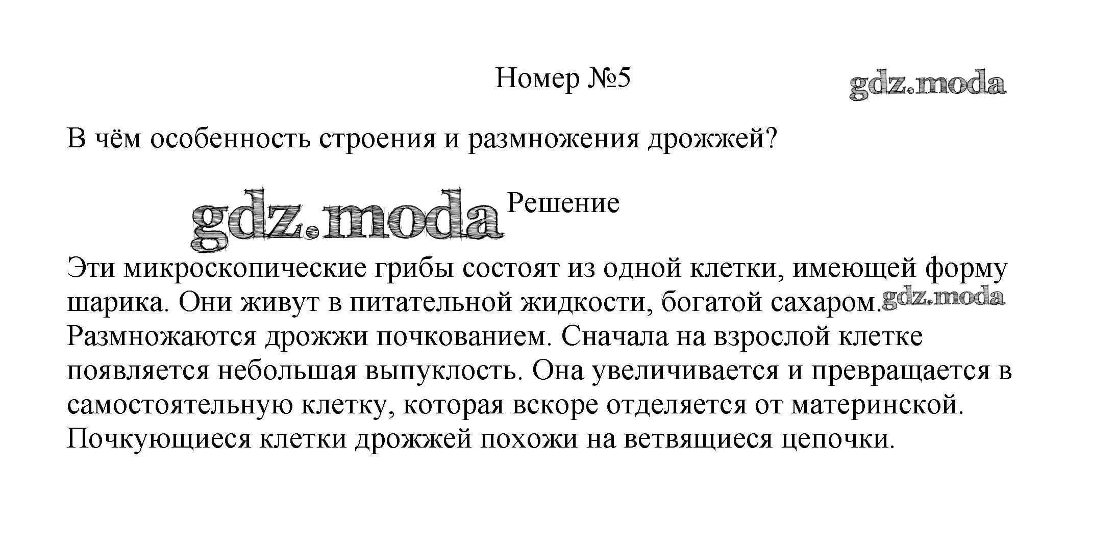 ОТВЕТ на задание № 5 Учебник по Биологии 5 класс Пасечник УМК