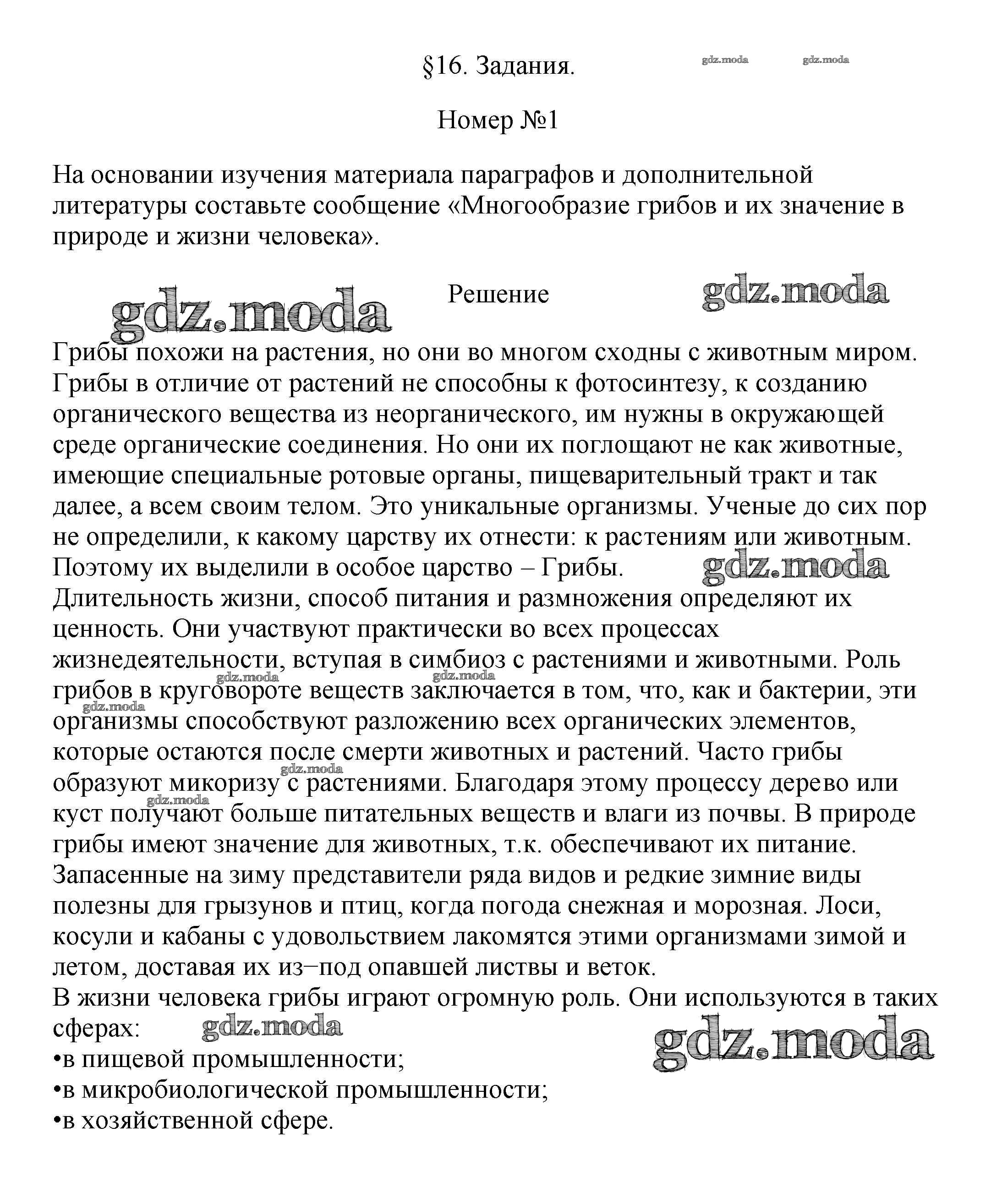 ОТВЕТ на задание № 1 Учебник по Биологии 5 класс Пасечник УМК