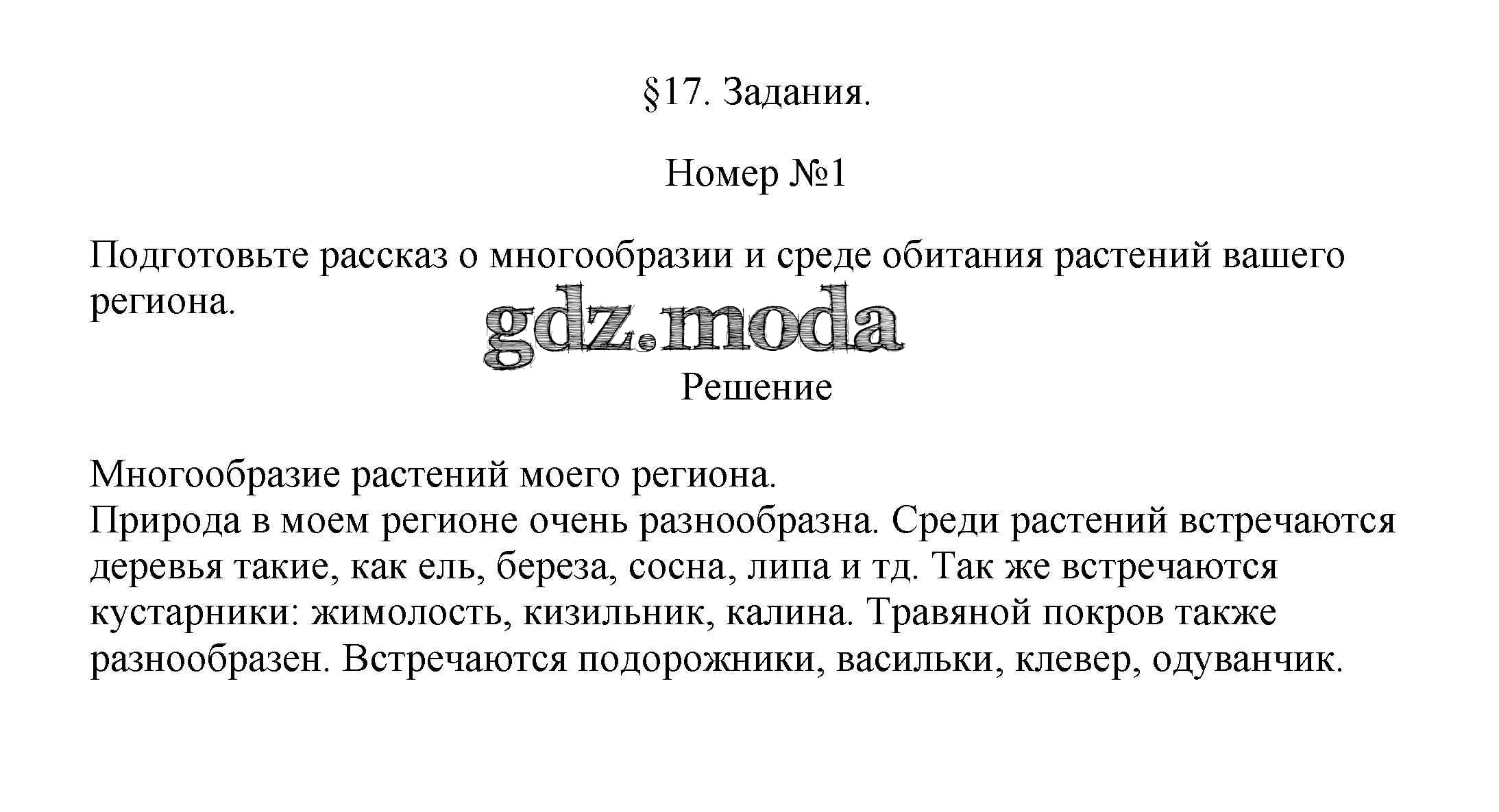 ОТВЕТ на задание № 1 Учебник по Биологии 5 класс Пасечник УМК