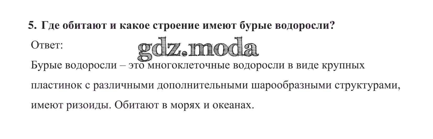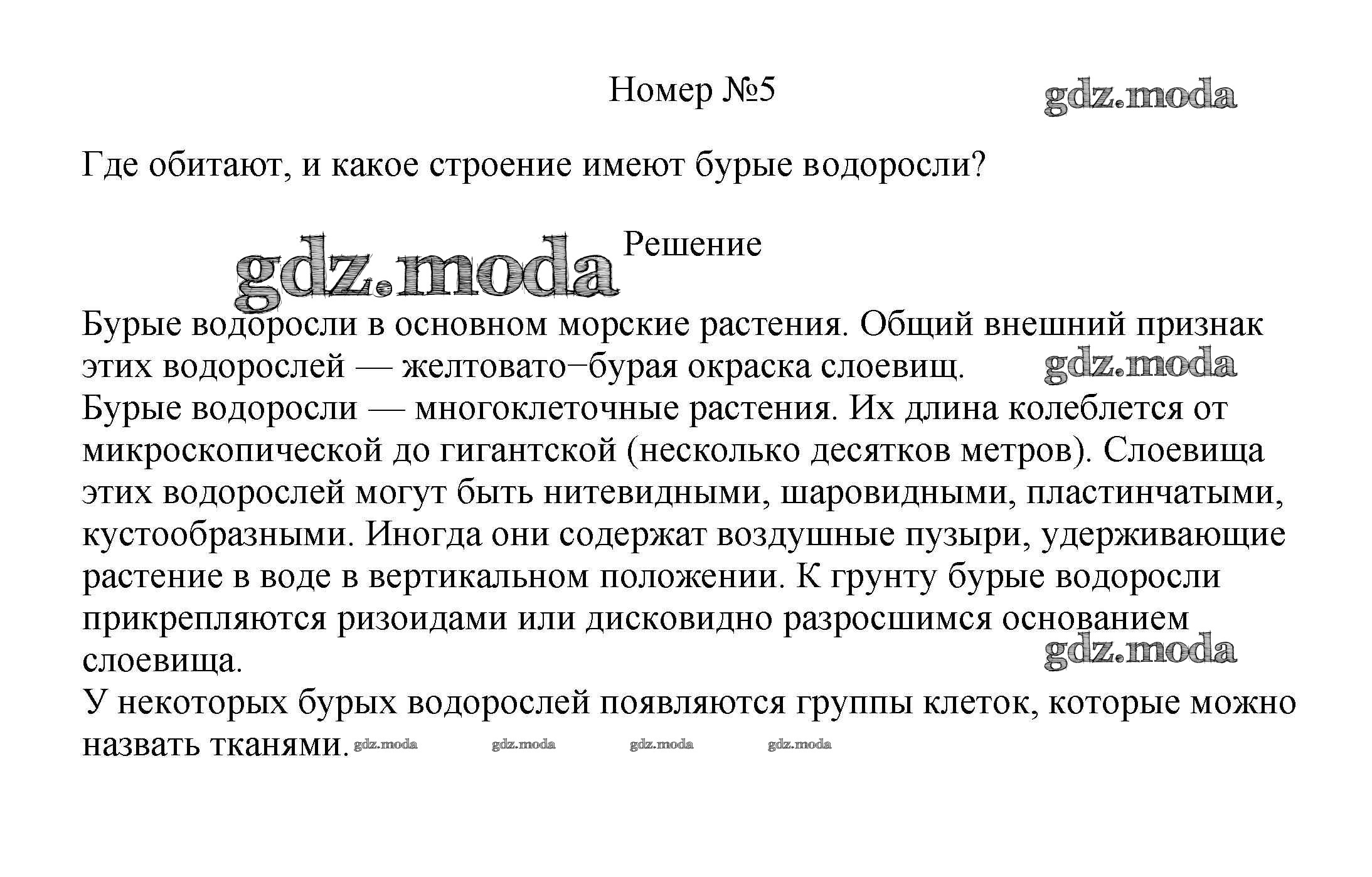 ОТВЕТ на задание № 5 Учебник по Биологии 5 класс Пасечник УМК