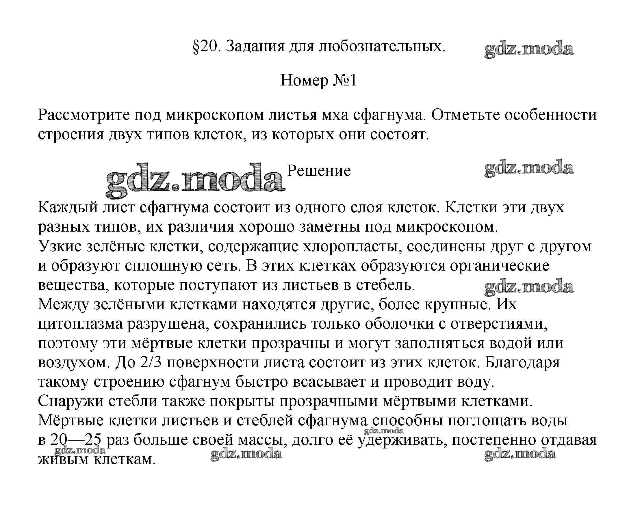 ОТВЕТ на задание № 1 Учебник по Биологии 5 класс Пасечник УМК