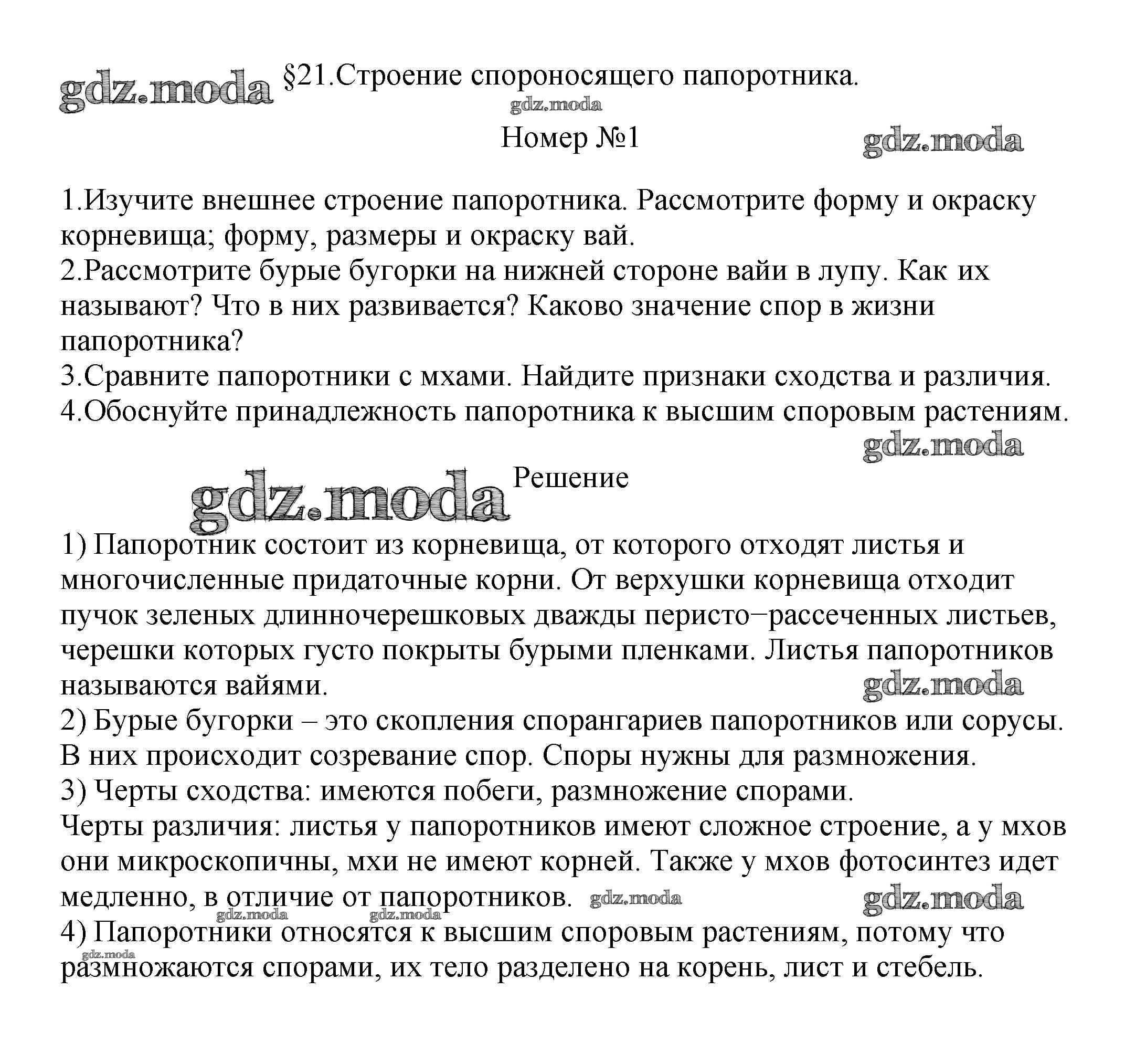 ОТВЕТ на задание № 1 Учебник по Биологии 5 класс Пасечник УМК