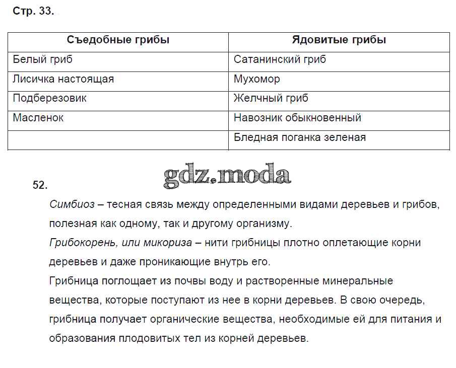ГДЗ решение к заданию № стр. 33 Биология 5 класс рабочая тетрадь Пасечник В.В. (к уч. Пасечника) Дрофа 2015 ФГОС бесплатно на гдз.мода!