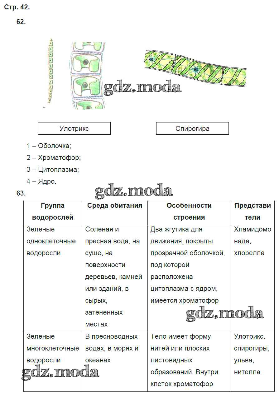 ГДЗ решение к заданию № стр. 42 Биология 5 класс рабочая тетрадь Пасечник В.В. (к уч. Пасечника) Дрофа 2015 ФГОС бесплатно на гдз.мода!