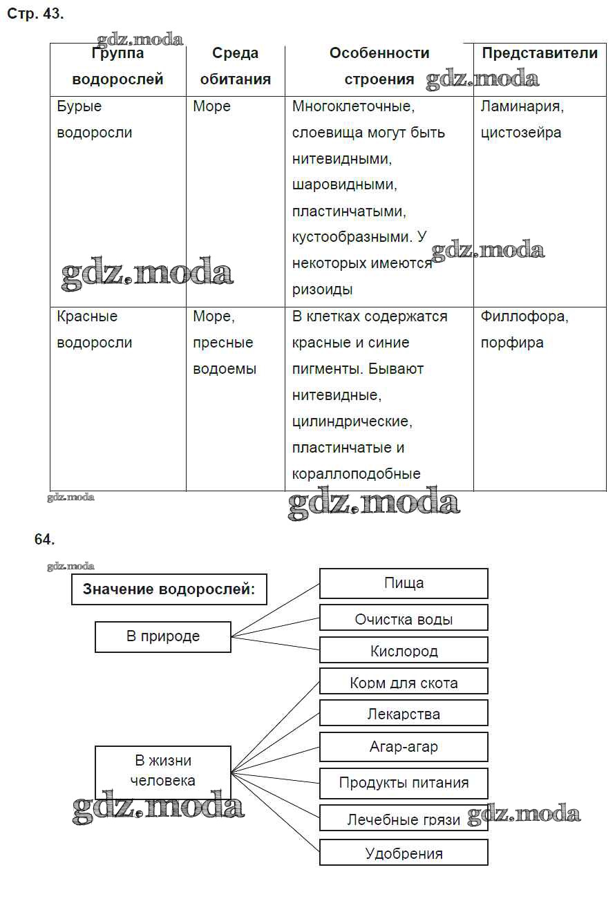 ГДЗ решение к заданию № стр. 43 Биология 5 класс рабочая тетрадь Пасечник В.В. (к уч. Пасечника) Дрофа 2015 ФГОС бесплатно на гдз.мода!