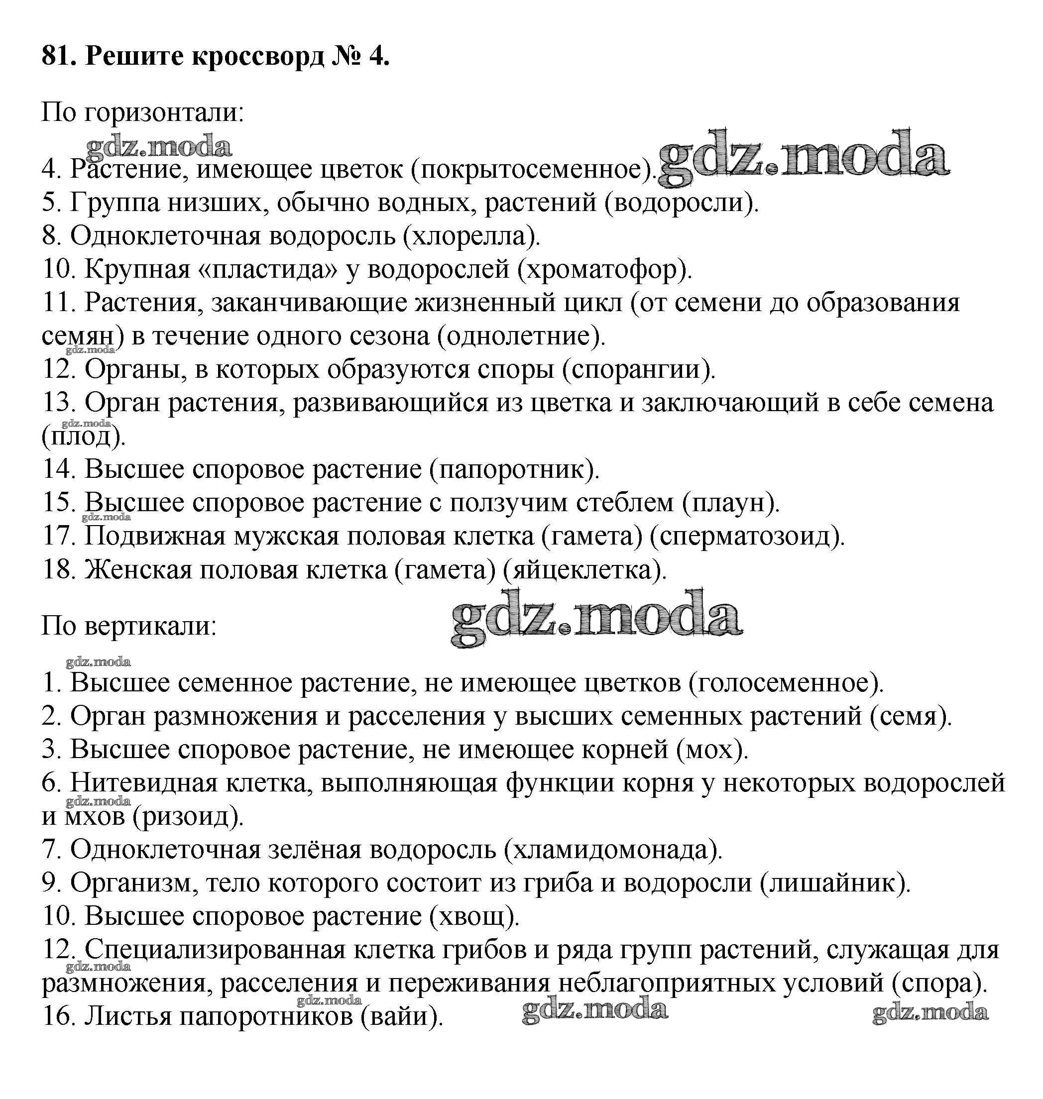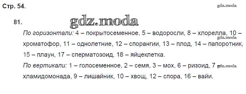 ОТВЕТ на задание № стр. 54 Рабочая тетрадь по Биологии 5 класс Пасечник Вертикаль