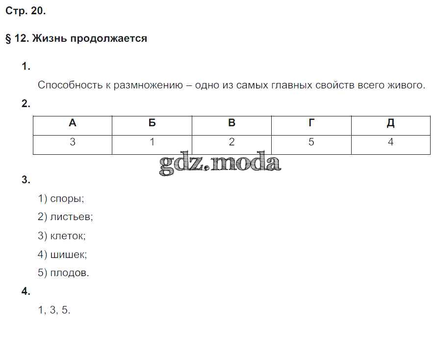 ГДЗ решение к заданию № 20 Биология 5 класс рабочая тетрадь Новикова С.Н. Русское слово 2019 ФГОС бесплатно на гдз.мода!