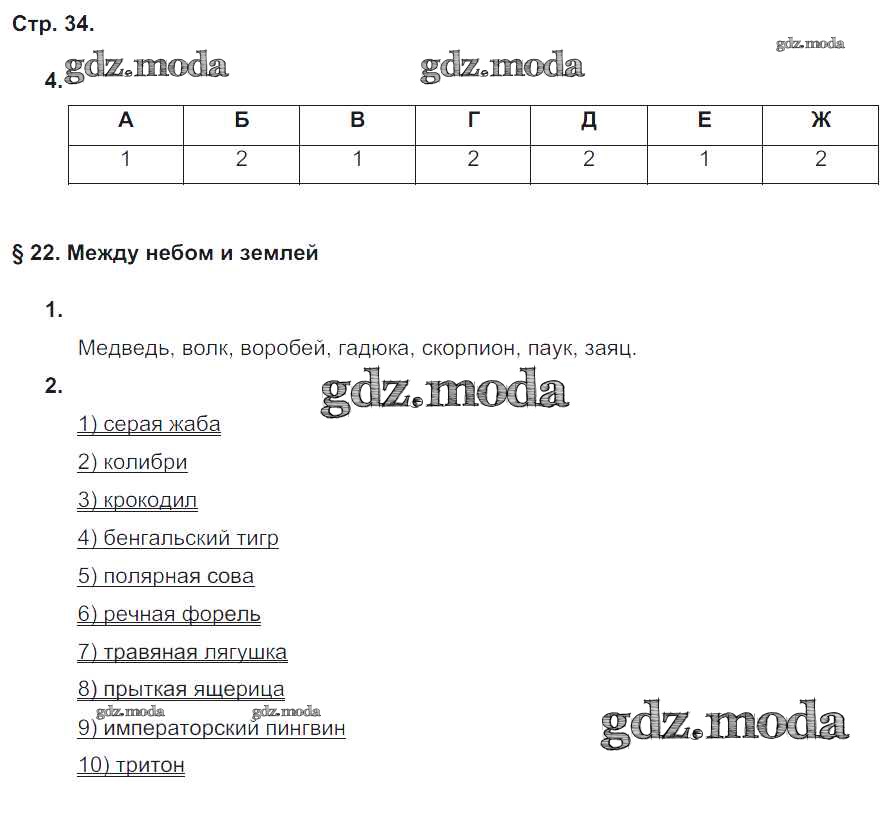 ГДЗ решение к заданию № 34 Биология 5 класс рабочая тетрадь Новикова С.Н. Русское слово 2019 ФГОС бесплатно на гдз.мода!