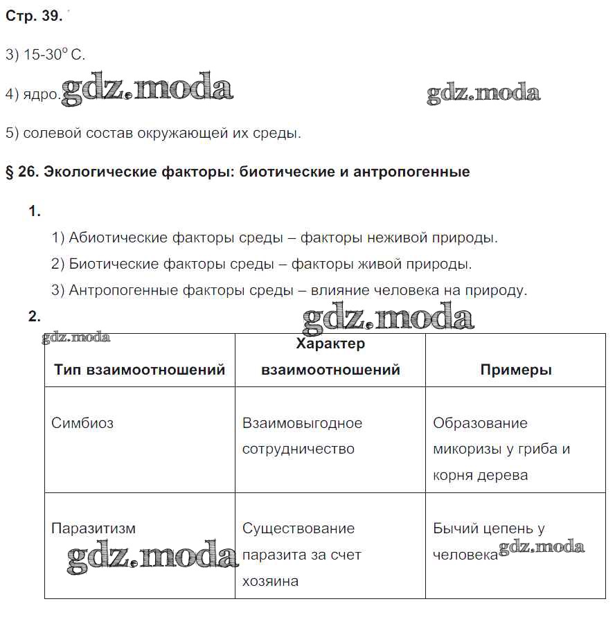 ГДЗ решение к заданию № 39 Биология 5 класс рабочая тетрадь Новикова С.Н. Русское слово 2019 ФГОС бесплатно на гдз.мода!