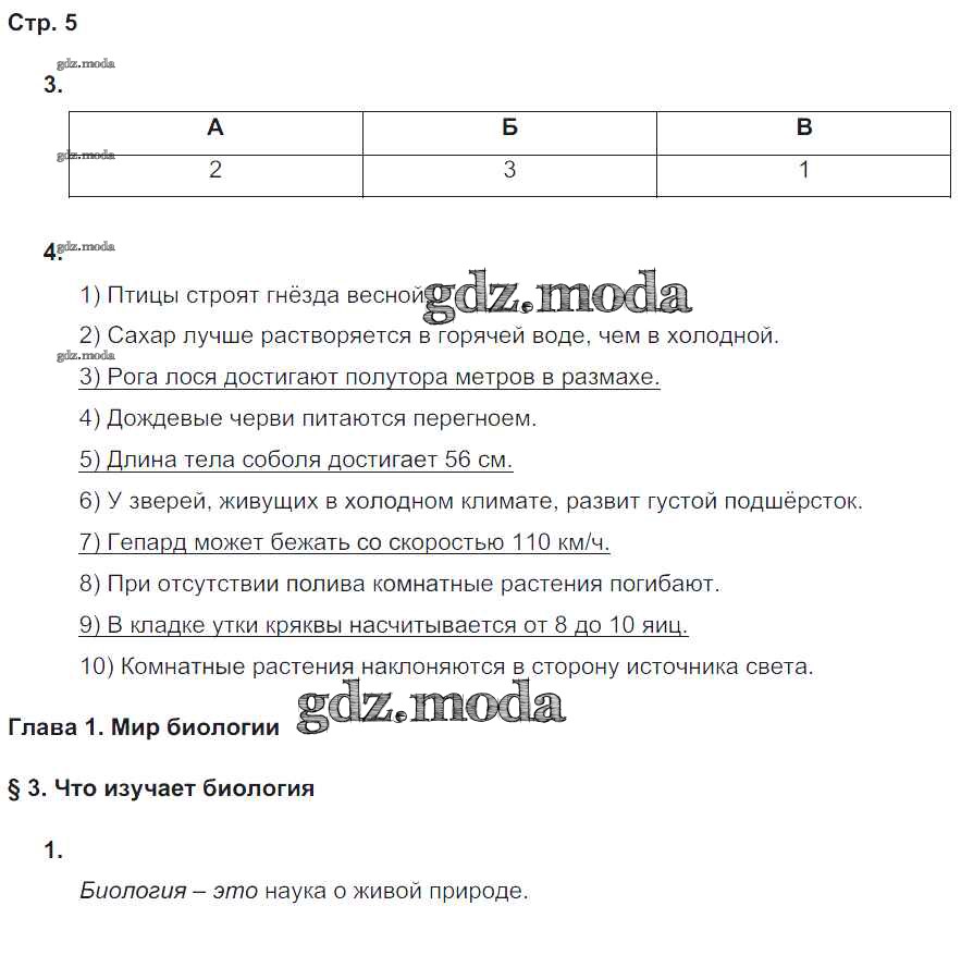 ГДЗ решение к заданию № 5 Биология 5 класс рабочая тетрадь Новикова С.Н. Русское слово 2019 ФГОС бесплатно на гдз.мода!