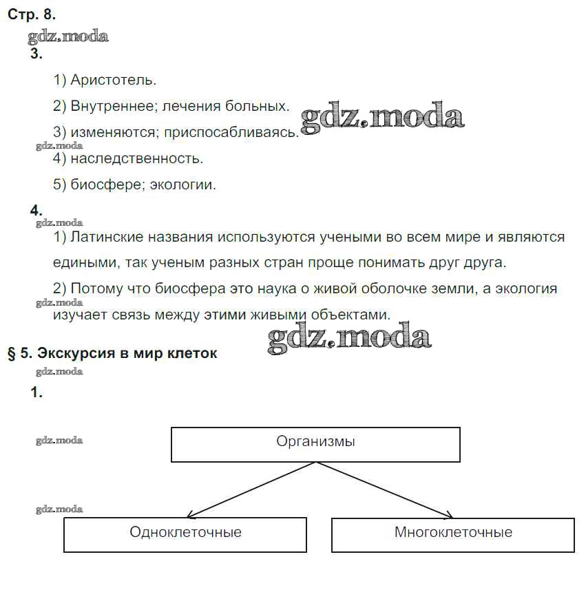 ГДЗ решение к заданию № 8 Биология 5 класс рабочая тетрадь Новикова С.Н. Русское слово 2019 ФГОС бесплатно на гдз.мода!