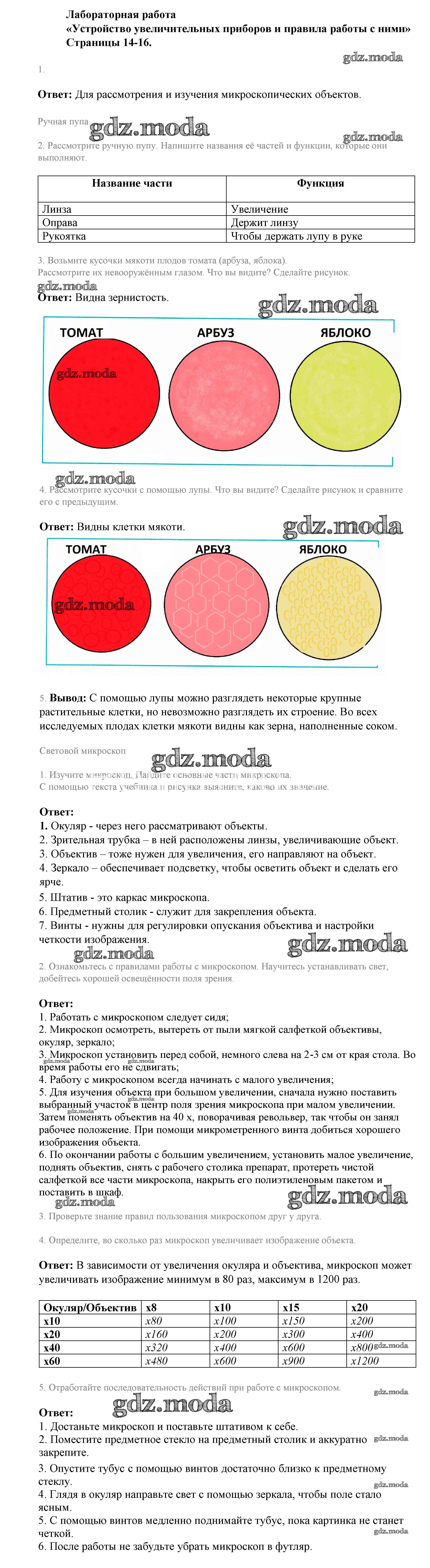 ОТВЕТ на задание № стр. 14 Рабочая тетрадь по Биологии 5 класс Сонин Вертикаль