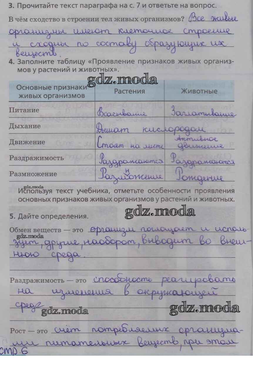 ОТВЕТ на задание № стр. 6 Рабочая тетрадь по Биологии 5 класс Сонин Вертикаль