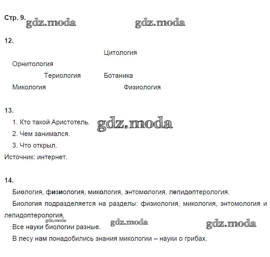 ОТВЕТ на задание № стр. 9 Рабочая тетрадь по Биологии 5 класс Сонин Вертикаль