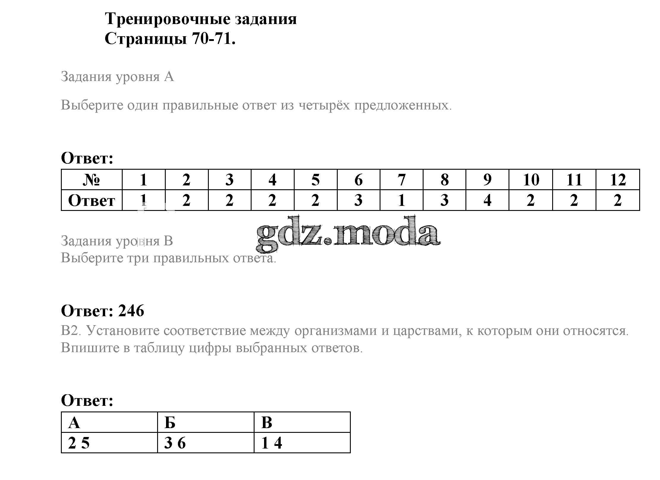 ОТВЕТ на задание № стр. 70 Рабочая тетрадь по Биологии 5 класс Сонин Вертикаль