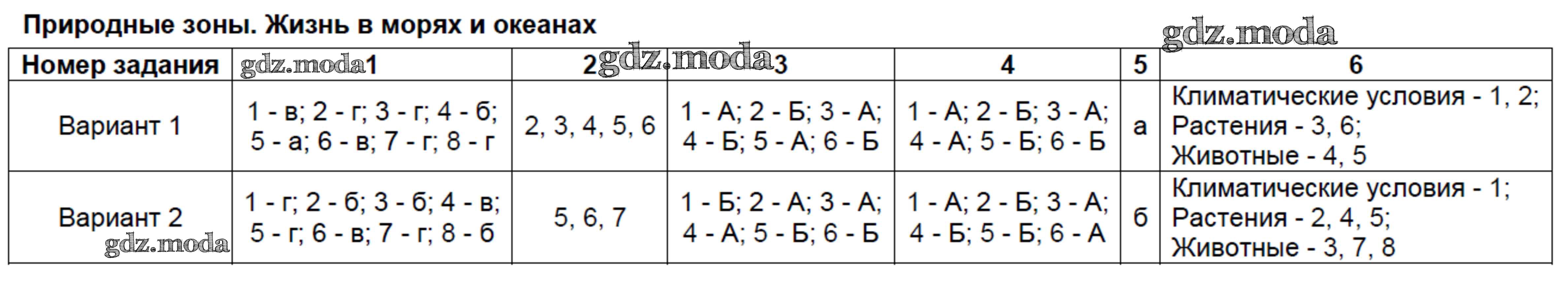 ГДЗ решение к заданию № Тест №16. Природные зоны. Жизнь в морях и океанах Биология 5 класс тесты Сонин Н.И. (к уч. Сонина) Дрофа 2017 ФГОС бесплатно на гдз.мода!