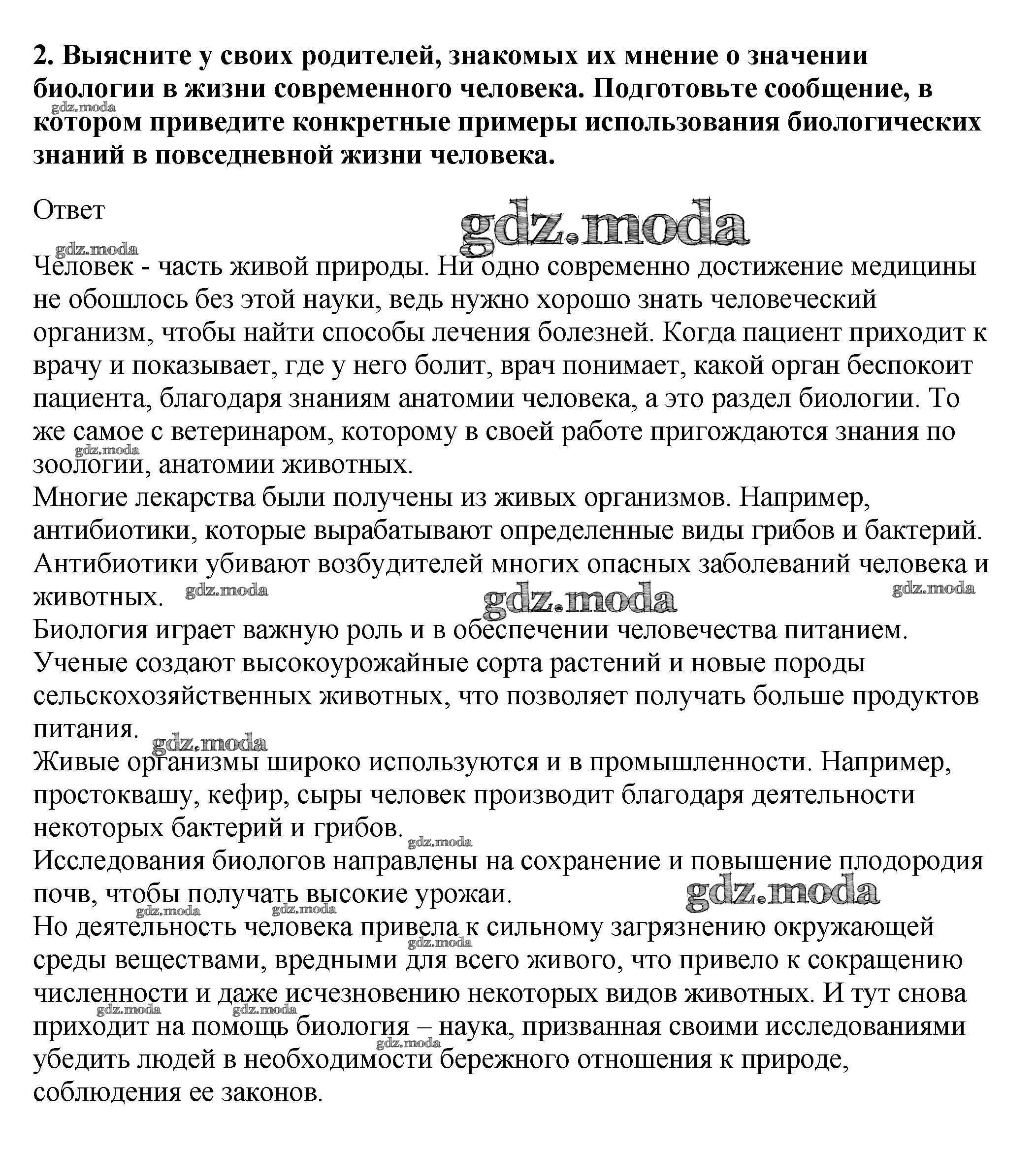 ОТВЕТ на задание № 2 Учебник по Биологии 5-6 класс Пасечник Линия жизни