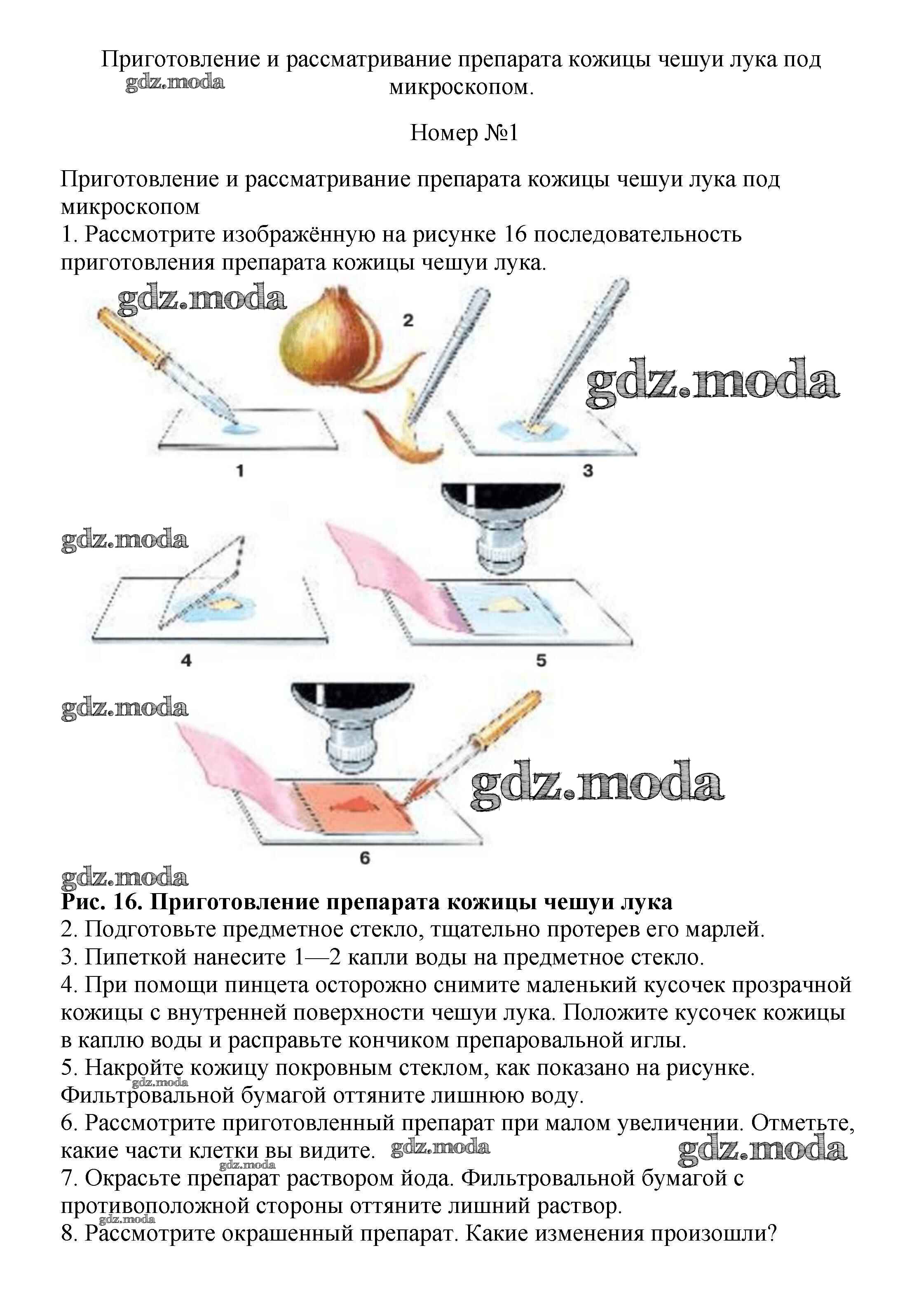 §8 / приготовление и рассматривание препарата кожицы чешуи лука под микроскопом / 1