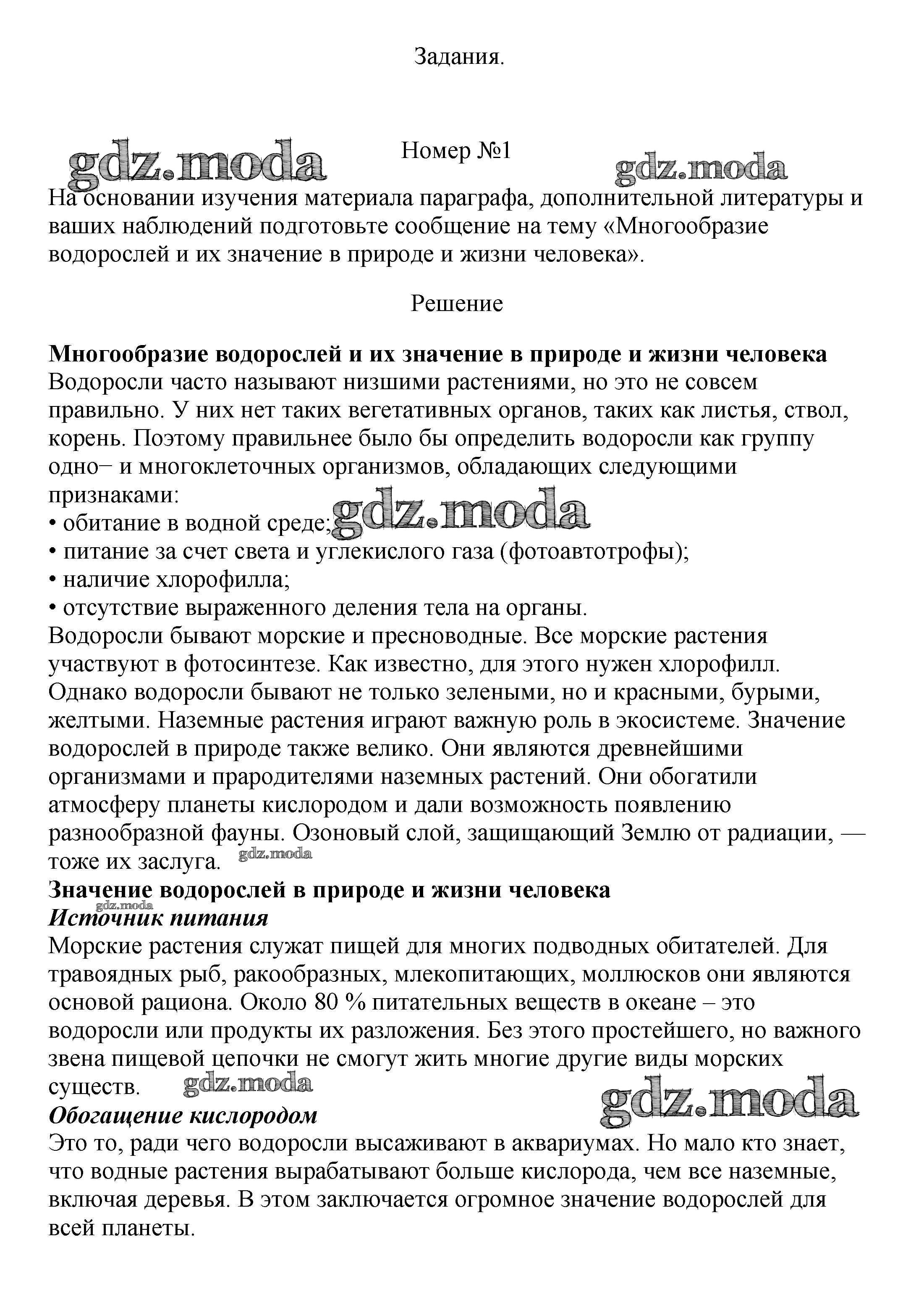 ОТВЕТ на задание № 1 Учебник по Биологии 5-6 класс Пасечник Линия жизни