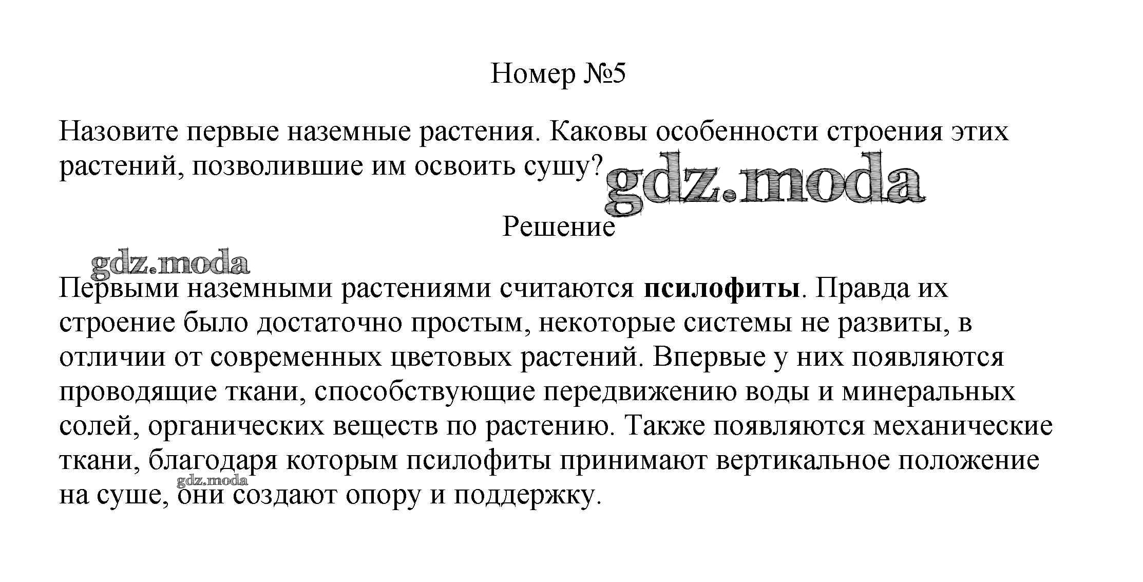 ОТВЕТ на задание № 5 Учебник по Биологии 5-6 класс Пасечник Линия жизни