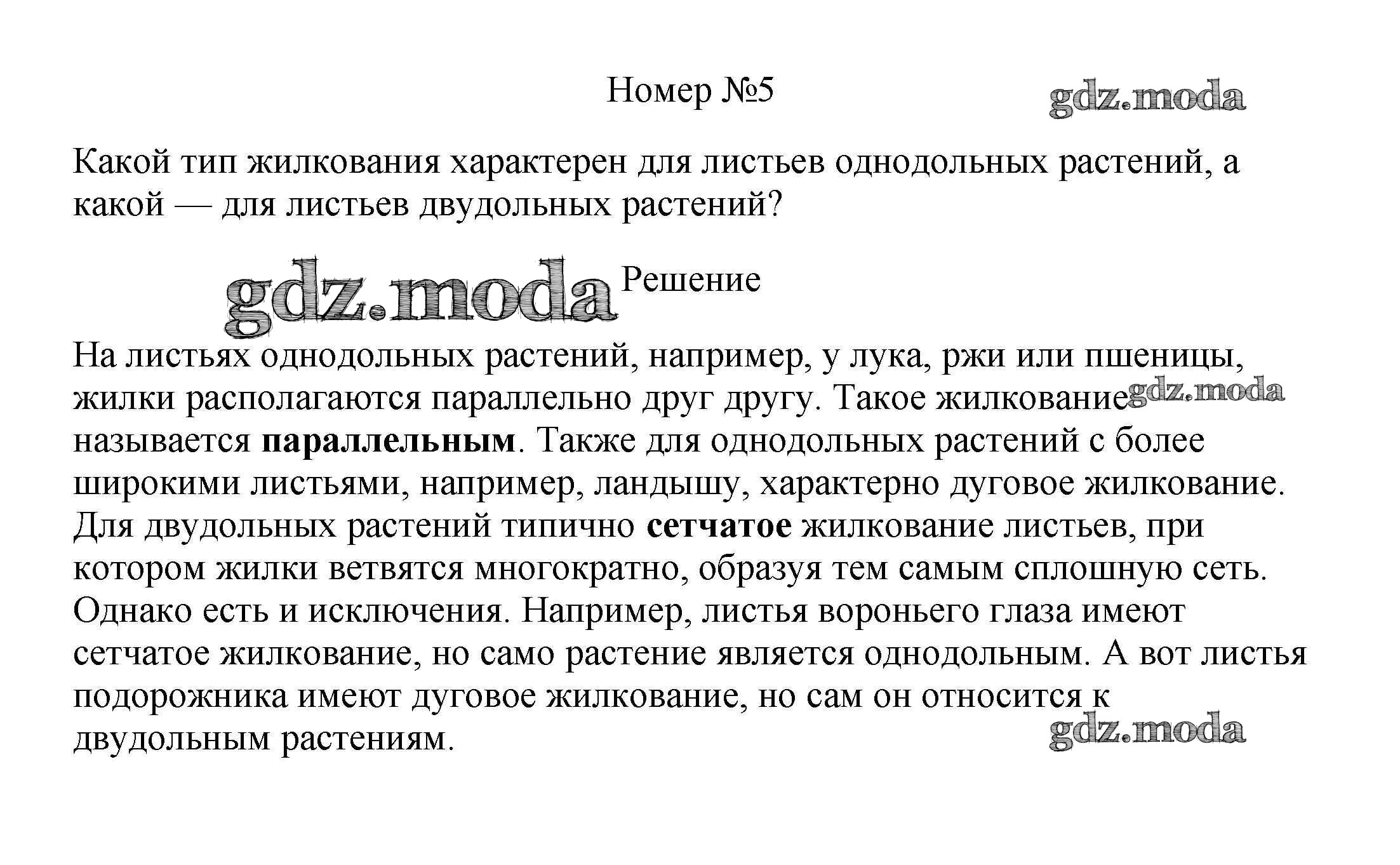ОТВЕТ на задание № 5 Учебник по Биологии 5-6 класс Пасечник Линия жизни
