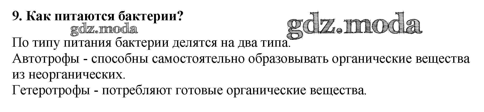 ГДЗ решение к заданию № 9 Биология 5 класс Пономарева И.Н. Вентана-граф 2016 ФГОС бесплатно на гдз.мода!
