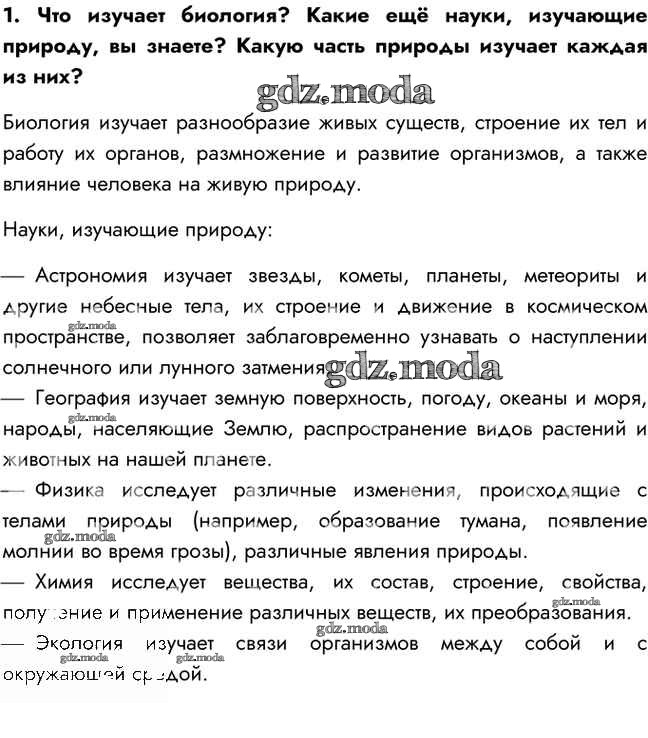 ГДЗ решение к заданию № 1 Биология 5 класс Сивоглазов В.И. Дрофа 2020 ФГОС бесплатно на гдз.мода!