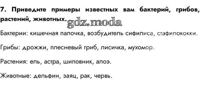 ГДЗ решение к заданию № 7 Биология 5 класс Сивоглазов В.И. Дрофа 2020 ФГОС бесплатно на гдз.мода!
