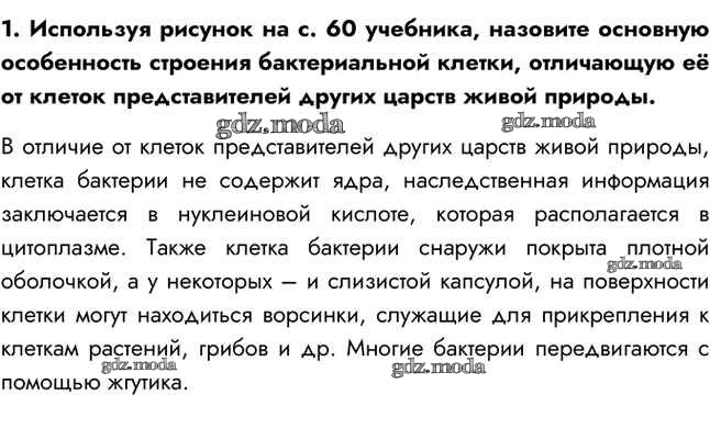 ОТВЕТ на задание № 1 Учебник по Биологии 5 класс Сивоглазов