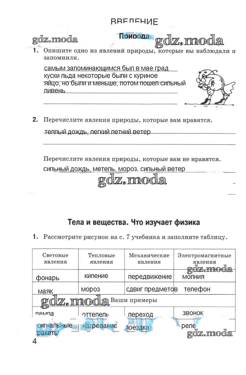 ОТВЕТ на задание № 4 Рабочая тетрадь по Физике 5 класс Гуревич